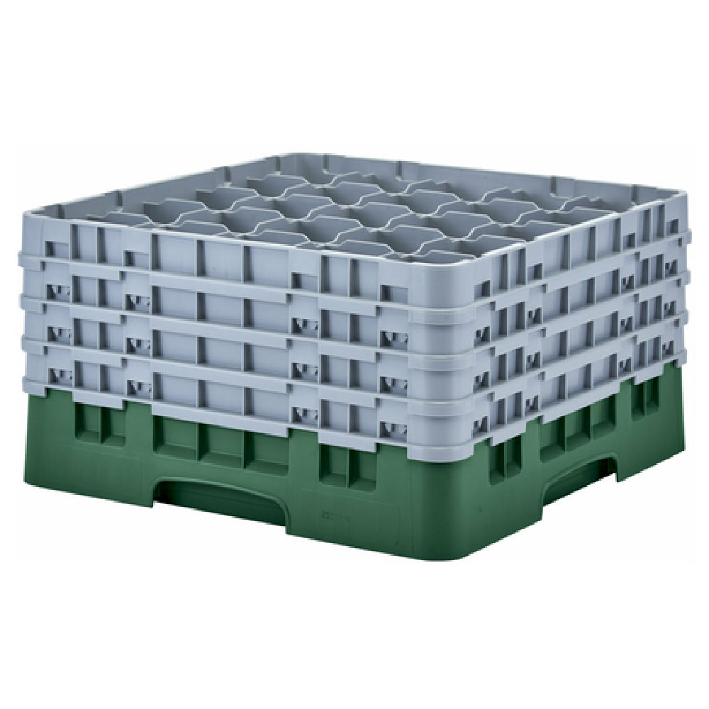 The Cambro 25S900119 Camrack® Glass Rack With (4) Soft Gray Extenders Full Size is a specialized warewashing solution designed for efficient and safe handling of glassware in commercial settings. This glass rack measures 19-3/4" x 19-3/4" x 10-1/2", providing a full-size, low-profile configuration ideal for optimal storage and transport. Equipped with four soft gray extenders, it offers a modular setup to accommodate various glass heights effectively. The rack features 25 individual compartments, each capable of securing glassware with a maximum diameter of 3-7/16" and a maximum height of 9-3/8", ensuring comprehensive protection and stability during warewashing processes. Its Sherwood green color adds a distinctive touch, aiding in easy organization and identification. The Camrack is both HACCP compliant and NSF certified, emphasizing its adherence to stringent health and safety standards. This makes it a reliable choice for diverse market segments, including restaurants, hotels, and catering services. By combining durability with versatility, the Cambro 25S900119 Camrack® Glass Rack supports the demands of high-volume operations, efficiently maintaining the quality and longevity of glassware.