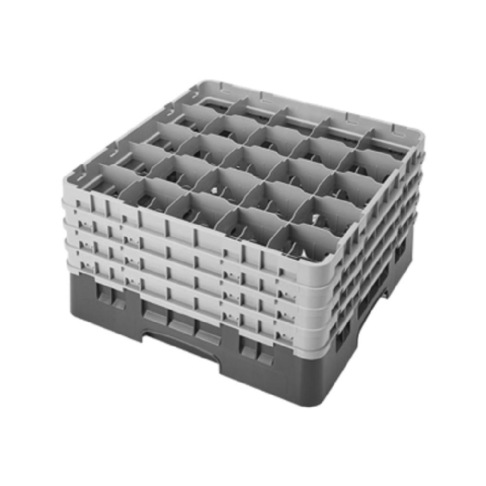 The Cambro 25S900167 Camrack® Glass Rack with (4) soft gray extenders is a full-size, low-profile solution tailored for efficient glassware management in various commercial settings, including restaurants and catering services. Measuring 19-3/4 inches by 19-3/4 inches by 10-1/2 inches, this rack is designed to accommodate up to 25 compartments, each supporting a maximum diameter of 3-7/16 inches and a height of 9-3/8 inches, making it suitable for a wide range of glassware types. The soft gray extenders contribute to its adjustable capacity and enhance its durability, ensuring that glasses are securely held during transit and storage. This rack is crafted with a brown finish, merging practicality with a professional appearance. The product is HACCP compliant, aligning with stringent food safety protocols, and NSF certified, guaranteeing its adherence to established public health standards. Its robust construction and compliance credentials make the Cambro 25S900167 Camrack® a valuable asset for establishments prioritizing reliable and efficient glassware handling solutions.