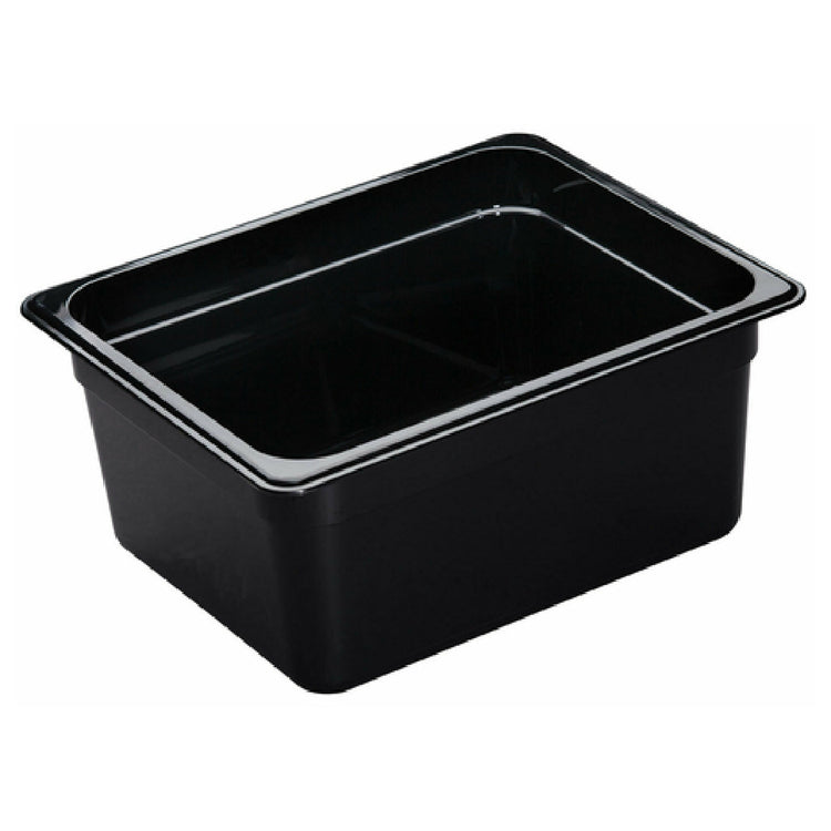 The Cambro 26HP110 H-Pan™ High Heat Hot Food Pan is a durable and versatile kitchen essential, designed to meet the rigorous demands of professional food service operations. This 1/2 size pan is 6 inches deep, providing ample capacity for a variety of hot food items. Constructed from high-temperature plastic, this pan withstands temperatures ranging from -40°F to 375°F, making it suitable for both cold storage and high-heat applications. Its non-stick surface ensures easy food release and cleaning, enhancing efficiency in busy kitchens. The pan is resistant to bending and denting, maintaining its shape and functionality even under heavy use. Available in black, it adds a sleek, professional look to any food service setting. The Cambro 26HP110 is NSF certified, assuring compliance with public health and safety standards. This high heat pan is an excellent choice for operators in restaurants, catering services, and institutional kitchens who require reliable performance and durability in their food handling equipment.