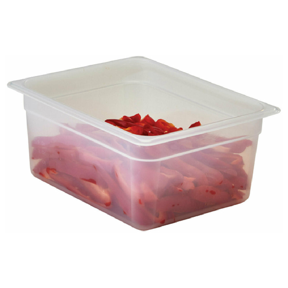 The Cambro 26PP190 Food Pan - 1/2 Size, 6" Deep is an essential component for any commercial kitchen, providing practical and versatile storage solutions. Crafted from durable polypropylene, this pan is designed for optimal performance and longevity in demanding environments. The translucent construction allows for easy identification of contents, enhancing efficiency in food preparation and storage operations. With a depth of 6 inches, this food pan offers ample capacity for a variety of culinary applications, making it suitable for storing, transporting, and serving food. As an NSF certified product, it meets rigorous standards for public health protection and ensures compliance with food safety regulations. The Cambro 26PP190 is tailored to meet the needs of different market segments within the food service industry, including restaurants, catering services, and institutional kitchens, where reliability and ease of use are paramount. Its half-size dimensions make it a flexible choice for various storage configurations, while the robust polypropylene material ensures resistance to stains and odors, further extending its utility and lifespan. The Cambro 26PP190 Food Pan is a vital asset for efficient kitchen operations, combining functionality with stringent safety standards.