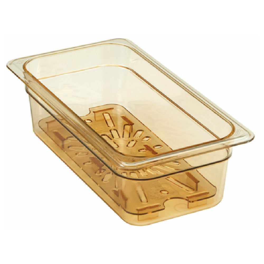 The Cambro 30HPD150 H-Pan™ Drain Shelf is a 1/3 size accessory designed for versatile use across various food service operations. With a wide temperature range of -40°F to 300°F, this drain shelf is crafted to withstand extreme conditions without compromising its integrity. Its non-stick surface ensures easy food release, while its construction guarantees it won't bend or dent, offering long-lasting durability. The amber color adds a distinctive touch, aligning with the visual requirements of different kitchen environments. Engineered to meet NSF standards, it assures compliance with public health and safety regulations, making it suitable for professional kitchens that prioritize hygiene and reliability. The Cambro 30HPD150 H-Pan™ Drain Shelf provides a dependable solution for effective drainage, preserving the quality of stored food items. Its technical specifications and robust design make it an ideal choice for chefs and food service professionals seeking efficient kitchen solutions.