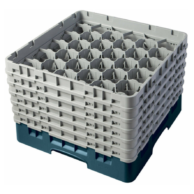 The Cambro 30S1114414 Camrack® Glass Rack With (6) Soft Gray Extenders Full Size is a robust and practical solution for various segments within the food and beverage industry, particularly where efficient glassware storage and transportation are paramount. This full-size rack measures 19-3/4 inches by 19-3/4 inches by 13-3/4 inches, providing ample space for handling up to 30 glass compartments. Each compartment accommodates a maximum diameter of 3-1/8 inches and a maximum height of 11-3/4 inches, making it suitable for a wide range of glass sizes. The addition of six soft gray extenders enhances its versatility and capacity, facilitating customizable configurations based on specific needs. The teal color not only adds a distinctive aesthetic but also aids in quick identification. Its HACCP compliance ensures that it meets rigorous health and safety standards, while the NSF certification underscores its suitability for high-demand environments. The Cambro 30S1114414 is engineered to deliver exceptional durability and reliability, making it an indispensable asset for establishments that prioritize high-efficiency operations and impeccable glassware care.