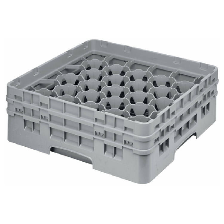 The Cambro 30S434151 Camrack® Glass Rack with (2) Soft Gray Extenders Full Size is a versatile and durable solution for efficiently organizing and transporting glassware in hospitality and catering environments. With dimensions of 19-3/4" x 19-3/4" x 7-1/4", it is expertly designed to accommodate a wide variety of glass sizes and shapes. This full-size glass rack features 30 compartments, each supporting a maximum diameter of 3-1/8" and a maximum height of 5-1/4", making it ideal for securely holding and protecting glassware during storage and transport. The inclusion of two soft gray extenders allows for increased versatility and capacity, ensuring that taller glassware can also be accommodated with ease. Constructed with HACCP compliance, this glass rack supports safe and sanitary handling of glassware, mitigating contamination risks in food service environments. The soft gray color not only offers a sleek appearance but also aids in easy identification and sorting. As an NSF-certified product, the Cambro Camrack® Glass Rack assures adherence to safety and quality standards, making it a reliable choice for restaurants, bars, hotels, and other establishments that require efficient and organized glassware management solutions.