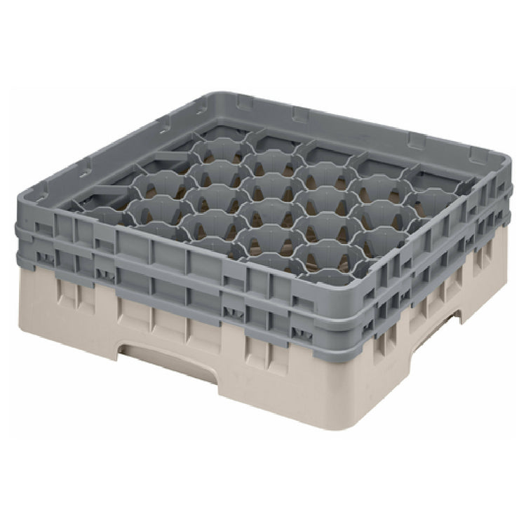 The Cambro 30S434184 Camrack® Glass Rack with (2) soft gray extenders is an essential solution for efficient glass storage and transportation in food service and hospitality industries. Measuring 19-3/4" x 19-3/4" x 7-1/4", this full-size rack features 30 compartments designed to securely hold glassware with a maximum diameter of 3-1/8" and a height of up to 5-1/4". Its soft gray extenders enhance the rack’s capacity, accommodating a variety of glass shapes and sizes while ensuring they remain stable during handling. The rack's beige color and HACCP compliance highlight its suitability for maintaining food safety standards, while NSF certification confirms adherence to public health guidelines. Constructed for durability and ease of use, the Cambro Camrack® is a practical choice for busy environments where both efficiency and hygiene are paramount. Its design facilitates seamless integration into automated or manual washing systems, making it versatile for restaurants, bars, and catering services striving to maintain high operational efficiency while protecting delicate glassware. The Cambro 30S434184 offers a combination of robust construction and practical design, ensuring reliable performance and safeguarding glassware through repeated cycles of use and cleaning.