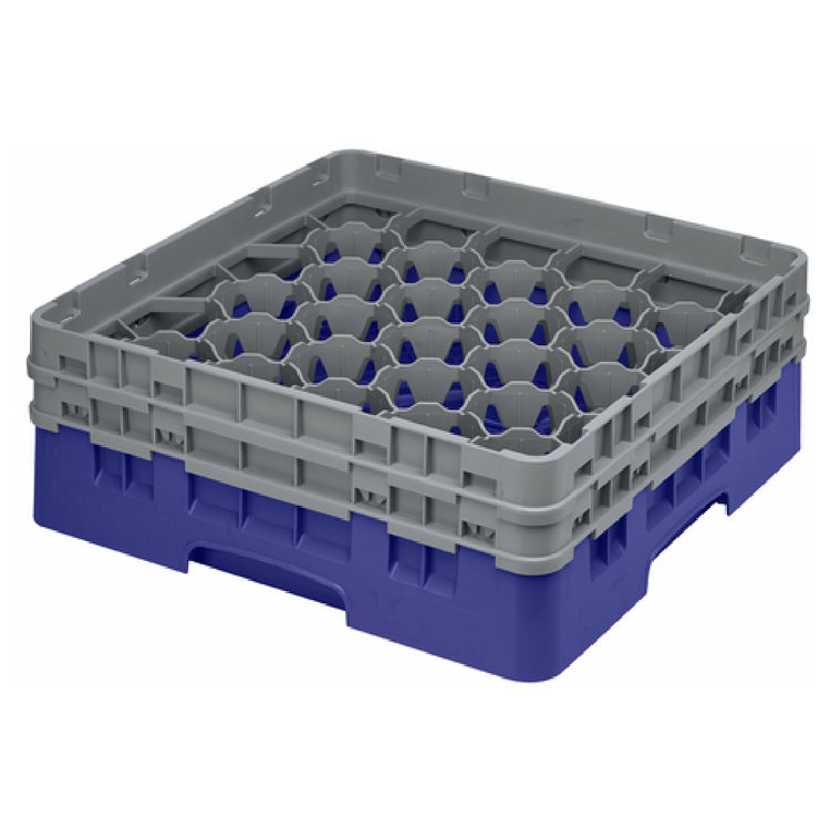 The Cambro 30S434186 Camrack® Glass Rack with (2) soft gray extenders is a full-size, highly efficient warewashing solution ideal for various sectors in the hospitality and catering industry. Measuring 19-3/4" x 19-3/4" x 7-1/4", this robust glass rack is designed to accommodate up to 30 compartments, each with a maximum diameter of 3-1/8" and a maximum height of 5-1/4". The rack comes in a navy blue finish and is equipped with two soft gray extenders to provide additional protection and stability for glassware of varying heights. This thoughtful design ensures that glassware remains secure and intact during the washing process. The Camrack® is HACCP compliant, making it suitable for environments with stringent health and safety standards. It is also NSF certified, offering reassurance of its quality and reliability. This glass rack is an excellent choice for restaurants, hotels, and bars looking to streamline their glassware cleaning processes while maintaining high standards of cleanliness and efficiency. Its durable construction and versatile design make it a valuable asset for any commercial kitchen or dining establishment seeking an effective warewashing solution.