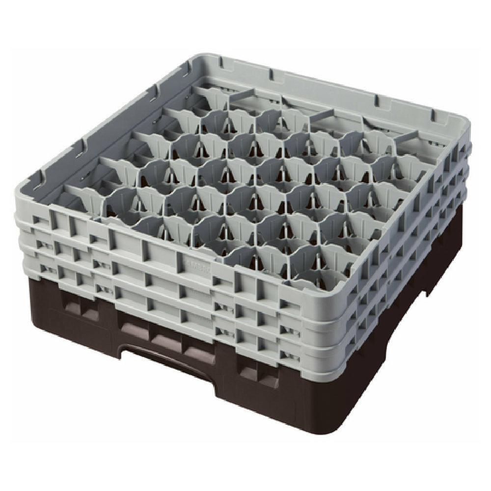 The Cambro 30S638167 Camrack® Glass Rack With (3) Soft Gray Extenders Full Size is a meticulously designed storage solution tailored for the food service industry's demanding environments. Engineered to accommodate up to 30 compartments, this full-size rack measures 19-3/4" x 19-3/4" x 8-7/8", providing a robust structure for organizing glassware. Each compartment can hold glassware with a maximum diameter of 3-1/8" and a height of up to 6-7/8", ensuring the safety and stability of diverse glass sizes. The inclusion of three soft gray extenders enhances the rack's versatility, allowing for optimal vertical space utilization. Finished in a brown hue, this rack not only adds a touch of elegance but also aligns with HACCP compliance standards, ensuring adherence to stringent health and safety regulations. The NSF certification further attests to its quality and suitability for professional use. Whether used in bustling restaurants, catering services, or hospitality settings, the Cambro 30S638167 Camrack® Glass Rack stands out for its durability, thoughtful design, and capacity, making it an indispensable asset for establishments prioritizing efficient glassware organization and hygiene. Its design ensures that it meets the varied needs of different market segments within the industry.