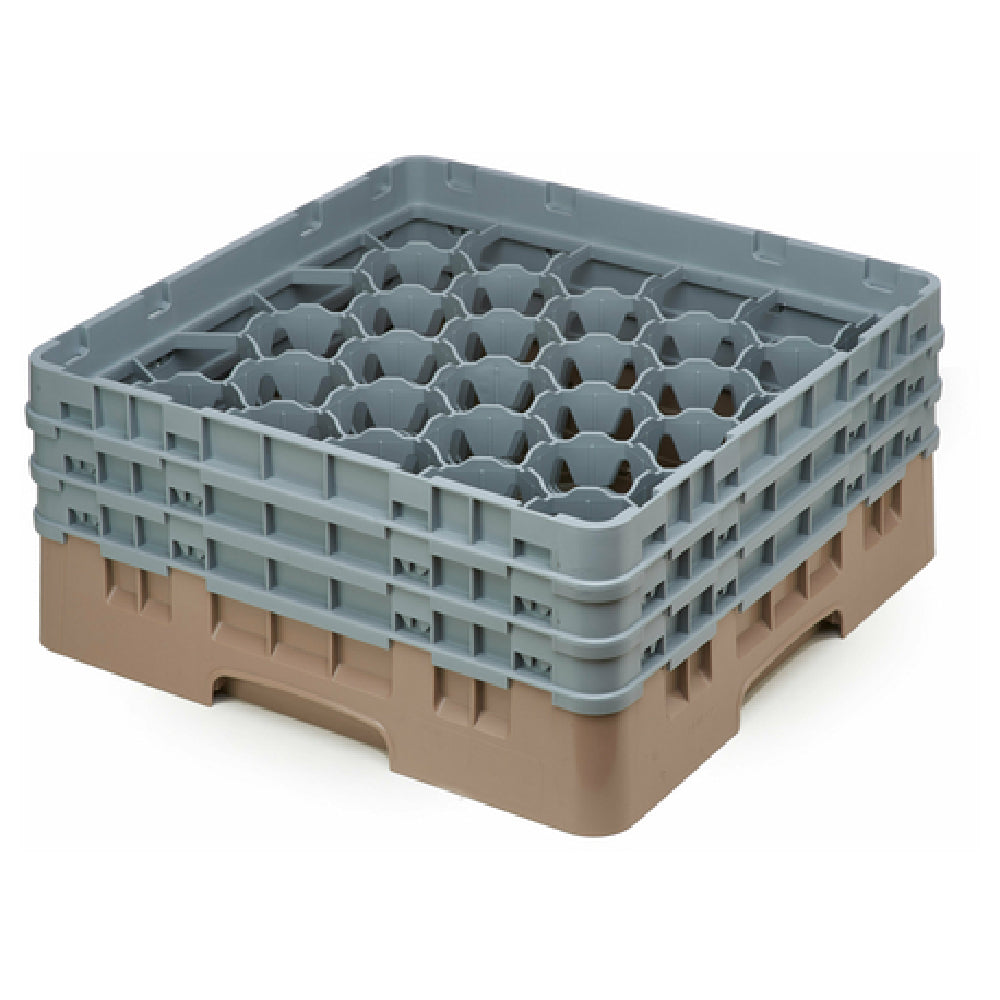 The Cambro 30S638184 Camrack® Glass Rack with (3) Soft Gray Extenders Full Size is an innovative solution designed to optimize glassware storage and transport in professional settings. Constructed to accommodate up to 30 compartments, each with a maximum diameter of 3-1/8 inches and a height of 6-7/8 inches, this full-size glass rack measures 19-3/4 inches by 19-3/4 inches by 8-7/8 inches, providing ample space and secure organization for a variety of glassware. The inclusion of three soft gray extenders enhances its ability to safely contain taller glass items. Its beige color aligns with industry standards, ensuring aesthetic compatibility with other kitchen equipment. HACCP compliance highlights the product’s commitment to maintaining high hygiene standards, an essential feature for businesses focused on food safety. Additionally, the NSF certification reinforces its reliability and adherence to public health and safety requirements. The Cambro 30S638184 Camrack® is a strategic choice for restaurants, bars, and catering services seeking a robust, hygienic solution for glassware management, combining durability with essential regulatory compliance. Its versatile design caters to diverse segment markets, providing practicality and efficiency in glassware storage and transport within the food service industry.
