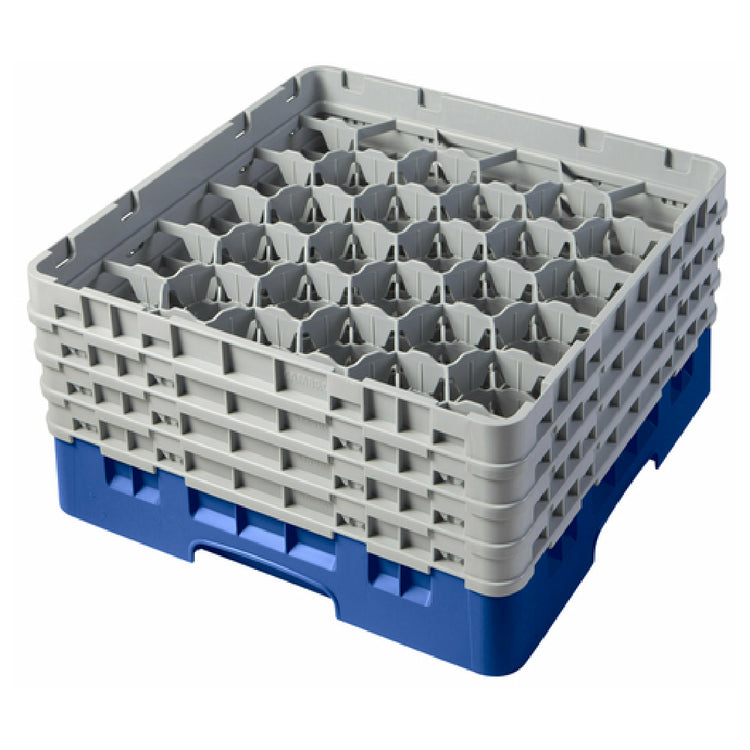 The Cambro 30S800168 Camrack® Glass Rack With (4) Soft Gray Extenders Full Size is a meticulously designed storage solution tailored for diverse food service environments. With dimensions of 19-3/4" x 19-3/4" x 10-1/2", this glass rack accommodates up to 30 compartments, each capable of holding items with a maximum diameter of 3-1/8" and a maximum height of 8-1/2". Its full-size structure, accentuated by a striking blue color, ensures ample capacity and easy visibility. The inclusion of four soft gray extenders enhances its adaptability, allowing it to securely hold varying glass sizes while maintaining stability during transportation and storage. This product meets HACCP compliance and is NSF certified, ensuring it adheres to stringent hygiene and safety standards. Ideal for restaurants, catering services, and hospitality sectors, where efficient storage and quick access to glassware are paramount, the Cambro 30S800168 Camrack® serves as an indispensable asset. Its robust construction and practical design make it a preferred choice for professionals seeking reliable and efficient equipment in their operations. This glass rack stands out for its ability to streamline glassware management, enhancing overall productivity in any setting.