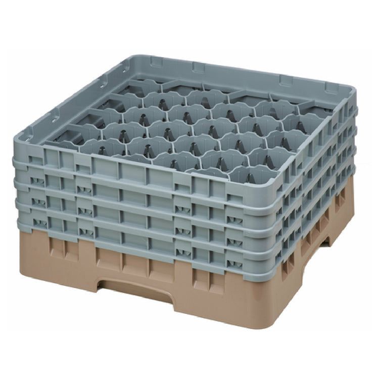 The Cambro 30S800184 Camrack® Glass Rack with (4) soft gray extenders, full size, is a versatile and essential tool for the efficient storage and washing of glassware across various food service sectors. Measuring 19-3/4" x 19-3/4" x 10-1/2", this rack is equipped with 30 compartments, each designed to accommodate glasses with a maximum diameter of 3-1/8" and a height of up to 8-1/2". The incorporation of four soft gray extenders allows for increased capacity and protection, ensuring that glassware is securely held in place during handling and cleaning processes. The rack’s beige color provides a neutral and clean appearance, suitable for any professional kitchen environment. HACCP compliance underscores its commitment to meeting rigorous food safety standards, while NSF certification confirms its adherence to public health and safety regulations. This combination of features makes the Cambro 30S800184 Camrack® Glass Rack a reliable choice for restaurants, catering services, and hospitality establishments, delivering optimal protection and cleanliness for glassware maintenance and storage. Its robust design and thoughtful engineering cater to the specific demands of high-volume operations, highlighting its role as a critical component in maintaining efficient kitchen workflows.
