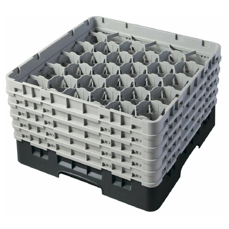 The Cambro 30S958110 Camrack® Glass Rack with (5) Soft Gray Extenders Full Size is an expertly designed solution for the efficient handling and storage of glassware in professional settings. With its full-size dimensions of 19-3/4" x 19-3/4" x 12-1/8", this innovative glass rack accommodates up to 30 compartments, each allowing a glass with a maximum diameter of 3-1/8" and a maximum height of 10-1/8". The inclusion of five soft gray extenders provides added flexibility and protection, catering to various glass sizes while ensuring optimal cleanliness and organization. Crafted in a sleek black finish, this glass rack is HACCP compliant, underscoring its alignment with international food safety standards. Additionally, it carries the NSF certification, validating its adherence to rigorous public health and safety criteria. The Cambro 30S958110 is tailored to meet the diverse requirements of bars, restaurants, and catering businesses, where efficient glassware management is crucial. Its robust design not only enhances operational efficiency but also ensures durability and long-term utility, making it an essential asset for any establishment focused on maintaining high standards of service and hygiene.