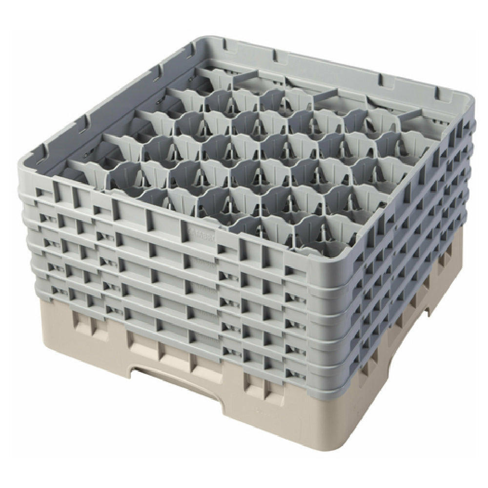 The Cambro 30S958184 Camrack® Glass Rack with (5) soft gray extenders is a full-size, versatile solution tailored for maximizing efficiency in glassware storage and transportation. Measuring 19-3/4" x 19-3/4" x 12-1/8", this rack is engineered to accommodate a variety of operational demands within the food service industry. It features 30 compartments, each supporting a maximum diameter of 3-1/8" and a maximum height of 10-1/8", which ensures secure and organized placement of glassware. The inclusion of five soft gray extenders enhances its capacity and adaptability, allowing it to cater to different glass sizes and shapes. Finished in a neutral beige color, it seamlessly integrates into diverse service environments. The rack is HACCP compliant, emphasizing its commitment to maintaining high hygiene standards, and it is NSF certified, ensuring it meets rigorous public health and safety criteria. The Cambro 30S958184 Camrack is a premium choice for restaurants, hotels, and catering services seeking to optimize their glassware management with reliability and precision. Its robust design and compliance credentials make it a dependable asset for maintaining cleanliness and organization in fast-paced service settings.