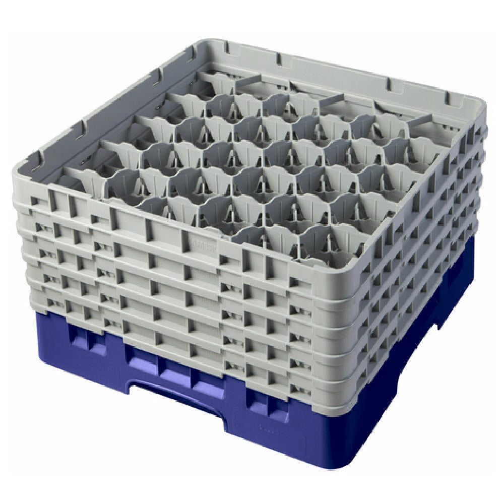 The Cambro 30S958186 Camrack® Glass Rack with (5) Soft Gray Extenders Full Size is engineered for efficient and safe transport within the hospitality and catering industry. With precise dimensions of 19-3/4" x 19-3/4" x 12-1/8", this full-size glass rack is designed to accommodate a variety of glassware, as it features 30 individual compartments, each supporting a maximum diameter of 3-1/8" and a maximum height of 10-1/8". The inclusion of five soft gray extenders ensures additional storage height, catering to a diverse range of glass sizes while maintaining stability during transit. The robust navy blue design not only enhances visual appeal but is also HACCP compliant, promoting food safety by minimizing cross-contamination during transportation and storage. This product is NSF certified, underscoring its adherence to stringent public health standards. The Cambro Camrack® is particularly valuable for restaurants, banquet halls, and catering services looking to maximize efficiency and safeguard glassware with its meticulously constructed compartments and durable materials. The soft gray extenders enhance adaptability, making it a versatile solution that addresses the needs of various segments within the foodservice industry.