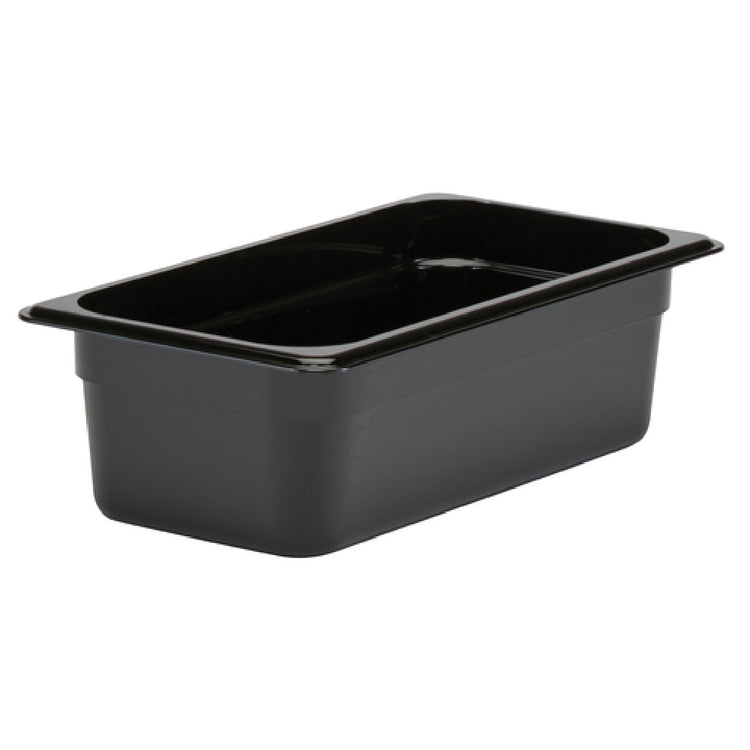 The Cambro 34CW110 Camwear® Food Pan 3.8 Qt. Capacity 4" Deep is a versatile, high-quality kitchen staple, designed to meet the diverse needs of the food service industry. With a 3.8-quart capacity and a depth of 4 inches, this pan is ideally suited for storing and serving a variety of foods. Its 1/3 size allows for efficient use of space in any kitchen setup, making it an excellent choice for both commercial and home kitchens. Constructed from durable polycarbonate, this food pan is resistant to breaking, chipping, and staining, ensuring long-lasting performance. The sleek black color adds a touch of elegance to food presentation, while its NSF certification guarantees that it meets rigorous public health and safety standards. The Cambro 34CW110 Camwear® Food Pan is an indispensable asset for restaurants, catering services, and any food service operation requiring a reliable solution for food storage and display. Its robust construction and thoughtful design make it a practical choice for professionals who prioritize durability and efficiency in their kitchen equipment. Whether used for cold storage, transport, or serving, this food pan provides exceptional versatility and reliability.