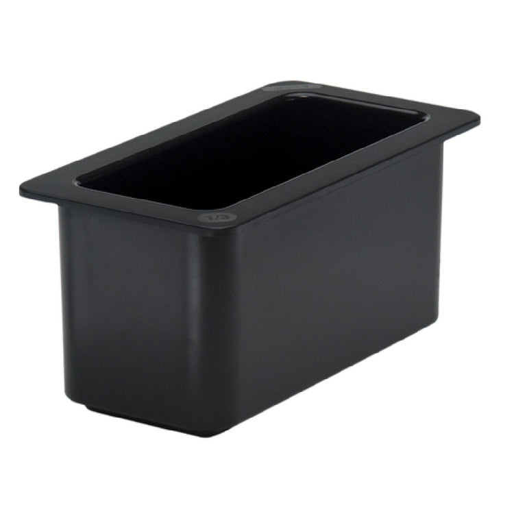 The Cambro 36CF110 Coldfest Gastronorm Pan - 1/3 size, 6" deep, black - is a highly efficient and durable solution for food service establishments in need of reliable cold storage. Specifically designed for catering and hospitality sectors, this pan meets the Gastronorm standard, ensuring compatibility with a wide range of kitchen equipment. Its 1/3 size makes it a versatile choice for serving varied culinary applications, fitting seamlessly into buffet lines, salad bars, and prep stations. The 6-inch deep configuration allows for ample food storage, reducing the need for frequent refills and enhancing operational efficiency. The Coldfest technology incorporated into the design ensures prolonged cold retention, making it ideal for maintaining the freshness of salads, fruits, and chilled desserts. Crafted in a sleek black finish, the 36CF110 adds a touch of modern elegance to any professional kitchen setup. Its robust construction not only provides resistance to breakage but also ensures longevity, even under demanding conditions. With these valuable features, the Cambro 36CF110 Coldfest Gastronorm Pan is an indispensable tool for chefs and catering professionals seeking to maintain optimal food quality while maximizing storage capabilities.