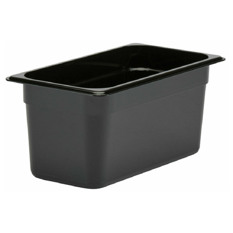 The Cambro 36CW110 Camwear® Food Pan is a versatile and durable solution for food storage and preparation, designed to meet the demanding needs of various food service environments. With a capacity of 5.6 quarts, this pan measures 6 inches deep and is classified as a 1/3 size, making it an ideal choice for both small and large food service operations. Constructed from high-quality polycarbonate, it offers exceptional durability and resistance to cracks, stains, and odors, ensuring longevity and reliability. The sleek black color not only adds a professional aesthetic touch but also enhances visibility in kitchen settings, facilitating easy identification of contents. This food pan is NSF certified, emphasizing its compliance with public health and safety standards. The Cambro 36CW110 is a valuable asset for various market segments, including restaurants, catering services, and institutional kitchens, where efficiency, hygiene, and effective storage solutions are paramount. Its robust design optimizes space within food service operations, allowing for organized storage and streamlined food preparation processes. This pan's unique combination of size, material, and capacity sets it apart as a preferred choice for professionals seeking dependable and efficient food storage options.