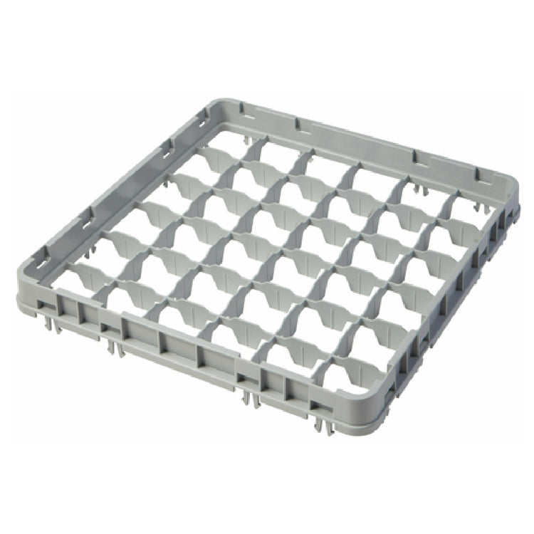 The Cambro 36E2151 Half Drop Extender Full Size is an innovative solution for optimizing storage and transportation in commercial kitchens and catering businesses. This extender features 36 compartments, each offering secure and efficient storage for various items. Measuring 19-5/8 inches by 19-5/8 inches and adding 1-5/8 inches to the rack height, this product is specifically designed to enhance the capacity of Camracks, providing additional space without compromising the stability and ease of handling. Its soft gray color adds a subtle touch to any kitchen environment, maintaining a professional appearance while blending seamlessly with existing equipment. Constructed to fit full-size racks, the Cambro 36E2151 is a practical accessory for businesses looking to maximize their storage solutions. Its precise dimensions and compatibility with Camracks make it a valuable addition for establishments focusing on efficiency and organization. Whether used in restaurants, hotels, or catering services, this half drop extender is engineered to meet the demands of high-volume operations, ensuring that storage systems remain robust and adaptable to varying needs.