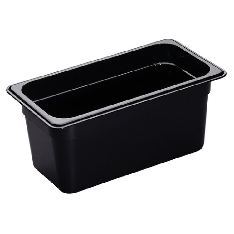 The Cambro 36HP110 H-Pan™ High Heat Hot Food Pan is a 1/3 size, 6-inch deep cooking essential designed for rigorous kitchen environments. This pan is crafted from high-temperature plastic, capable of withstanding extreme conditions ranging from -40°F to 375°F. Its non-stick surface ensures effortless food release and quick cleaning, making it ideal for busy food service operations. Unlike traditional metal pans, the Cambro H-Pan™ will not bend or dent, offering exceptional durability and longevity. The pan's sleek black color adds a touch of sophistication to any professional kitchen setting. Certified by NSF, this hot food pan meets stringent health and safety standards, fostering confidence in food handling practices. Perfect for commercial kitchens, catering services, and institutions, this high heat pan accommodates a variety of culinary applications, from baking and roasting to cold storage, without compromising structural integrity. The Cambro 36HP110 H-Pan™ represents a reliable and versatile solution for chefs and food service professionals seeking efficiency and performance in their high-volume operations.