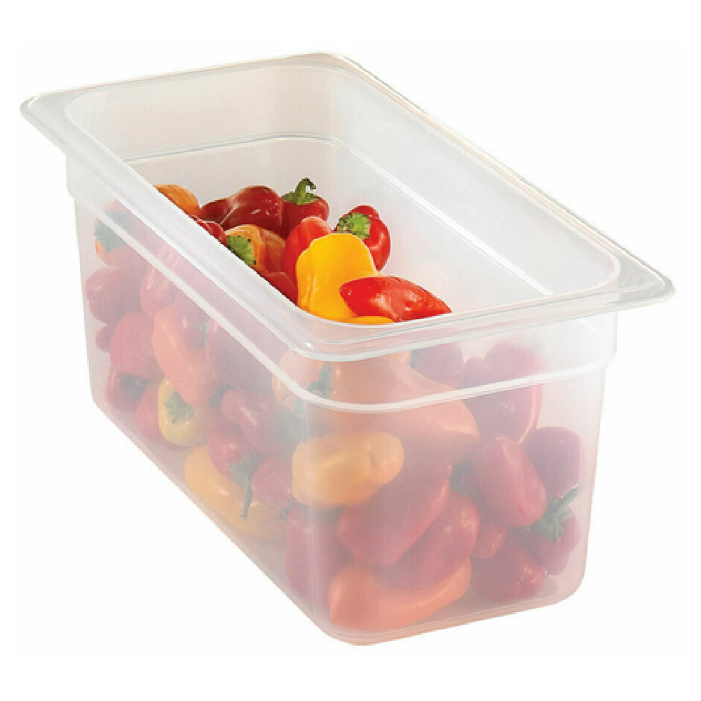 The Cambro 36PP190 Food Pan is a practical and versatile kitchen accessory designed for optimal food storage and handling. As a 1/3 size pan measuring 6 inches deep, it offers substantial capacity for a variety of culinary needs, making it ideal for the food service industry. Constructed from durable polypropylene, this food pan promises resilience and longevity, ensuring it withstands the rigors of busy kitchen environments. Its translucent material provides the perfect balance of visibility and protection, allowing for quick identification of contents while maintaining freshness. Certified by the NSF, the Cambro 36PP190 assures compliance with rigorous public health standards, making it a reliable choice for maintaining hygiene and safety in food preparation areas. This food pan seamlessly integrates into different market segments, from small cafes to large-scale catering operations, due to its standardized size and robust design. Its compatibility with various storage and transportation systems enhances its utility, making it a valuable asset in both commercial kitchens and institutional dining settings. The Cambro 36PP190 stands out for its combination of practical design and high-quality construction, providing an effective solution for professionals seeking dependable food storage solutions.