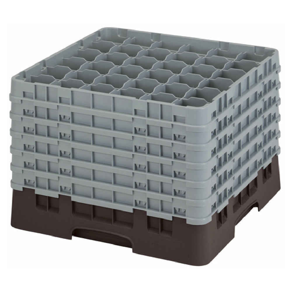 The Cambro 36S1214167 Camrack® Glass Rack with (6) Soft Gray Extenders Full Size is expertly engineered to optimize glassware organization and handling in busy commercial settings. This full-size rack measures 19-3/4" x 19-3/4" x 13-3/4", making it an ideal solution for maximizing space while ensuring the safety of delicate glassware. With (36) compartments, each accommodating a maximum diameter of 2-7/8" and a height of 12-5/8", it is perfectly suited for various glass sizes used in food service operations. The low-profile design facilitates easy access and handling, while the soft gray extenders provide additional support and protection for taller items. Made in a durable brown finish, this rack not only ensures the longevity of your glassware but also complies with HACCP standards, ensuring hygiene and safety. Additionally, the NSF certification highlights its adherence to public health guidelines. This Camrack® Glass Rack is an invaluable asset for restaurants, catering services, and any food service establishment seeking an efficient and reliable solution for glassware management, offering a blend of functionality, durability, and safety.