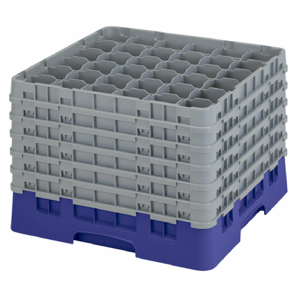 The Cambro 36S1214186 Camrack® Glass Rack with (6) Soft Gray Extenders is a full-size, low-profile storage solution perfectly suited for various segments of the hospitality and food service industry. With dimensions of 19-3/4 inches by 19-3/4 inches by 13-3/4 inches, this robust glass rack is designed to accommodate up to 36 compartments, each supporting a maximum glass diameter of 2-7/8 inches and a height of up to 12-5/8 inches. The inclusion of six soft gray extenders enhances its versatility, allowing for the secure and organized transport of glassware. Presented in a navy blue finish, this rack not only maintains a sleek and professional appearance but also aligns with HACCP compliance and NSF certification, ensuring adherence to the highest standards of food safety and sanitation. The Cambro Camrack® is a reliable and durable choice, offering superior protection and ease of handling for various glassware types, from casual dining settings to high-end banquet operations. Its thoughtful design supports efficient workflow and minimizes breakage, making it an invaluable addition to any establishment requiring robust glassware management solutions.