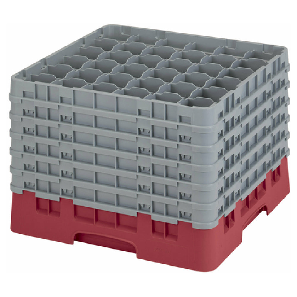 The Cambro 36S1214416 Camrack® Glass Rack is a full-size, low-profile storage solution designed for efficient organization and protection of glassware in commercial settings. With its dimensions of 19-3/4" x 19-3/4" x 13-3/4", this rack provides ample space with 36 compartments, each accommodating up to a 2-7/8" maximum diameter and a 12-5/8" maximum height, making it suitable for a variety of glass sizes. The rack includes six soft gray extenders that enhance storage versatility and adaptability for different glassware types. Its distinctive cranberry color not only provides a visually appealing option for inventory management but also ensures easy identification within busy kitchen environments. Compliant with HACCP standards, the Camrack® Glass Rack supports food safety and sanitation protocols, crucial for any food service operation. Furthermore, its NSF certification guarantees adherence to public health standards, making it a reliable choice for restaurants, bars, and catering services. The Cambro 36S1214416 Camrack® is engineered to facilitate efficient glassware handling and storage, reducing breakage and optimizing space within dishwashing and storage areas, proving invaluable for establishments keen on maintaining high standards of hygiene and operational efficiency.