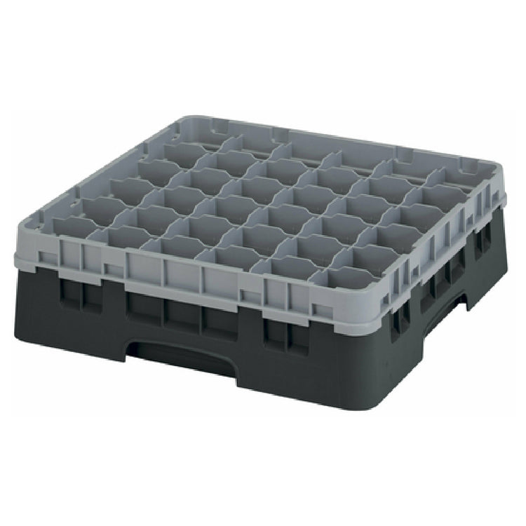 The Cambro 36S418110 Camrack® Glass Rack with Soft Gray Extender Full Size is a meticulously designed storage solution tailored for diverse industry needs. This full-size glass rack measures 19-3/4" x 19-3/4" x 5-5/8", offering ample space for efficient glassware organization. Featuring 36 compartments, each with a maximum diameter of 2-7/8" and a maximum height of 4-1/2", it is ideal for securely accommodating various glass sizes. The low-profile design ensures ease of use while optimizing storage capacity in commercial settings. Constructed in black, it is HACCP compliant, aligning with international food safety standards to ensure hygienic storage. The NSF certification further attests to its quality and safety, making it a reliable addition to any professional kitchen or hospitality environment. The soft gray extender enhances its adaptability, providing added depth for taller glassware without compromising stability. Whether utilized in bustling restaurants, catering services, or event venues, the Cambro 36S418110 Camrack® Glass Rack stands out for its durability and practical design, meeting the rigorous demands of high-volume operations while ensuring glassware is stored safely and efficiently.