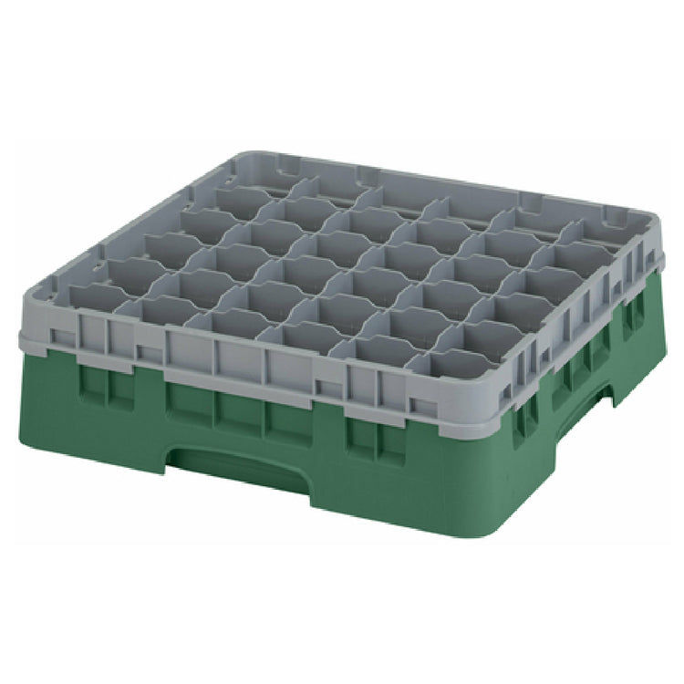 The Cambro 36S418119 Camrack® Glass Rack With Soft Gray Extender Full Size is a versatile and essential tool for any food service establishment requiring efficient glassware handling. This glass rack is engineered with a low profile design, measuring 19-3/4" x 19-3/4" x 5-5/8", making it suitable for space-saving storage and transport. It features 36 compartments, each accommodating a maximum diameter of 2-7/8" and a maximum height of 4-1/2", allowing for meticulous organization of glassware. The inclusion of a soft gray extender enhances its capacity while maintaining the structural integrity of the rack. Constructed in a Sherwood green finish, it is easily identifiable and aesthetically pleasing. The Camrack® is HACCP compliant, ensuring adherence to food safety standards crucial in rigorous food service environments. Additionally, it holds an NSF certification, verifying its conformity with public health protection guidelines. This glass rack, with its robust design and detailed specifications, caters to the diverse demands of restaurants, hotels, and catering services, ensuring safe and efficient glassware management. Its technical specifications make it a reliable and practical choice for businesses prioritizing hygiene and organization in their operations.