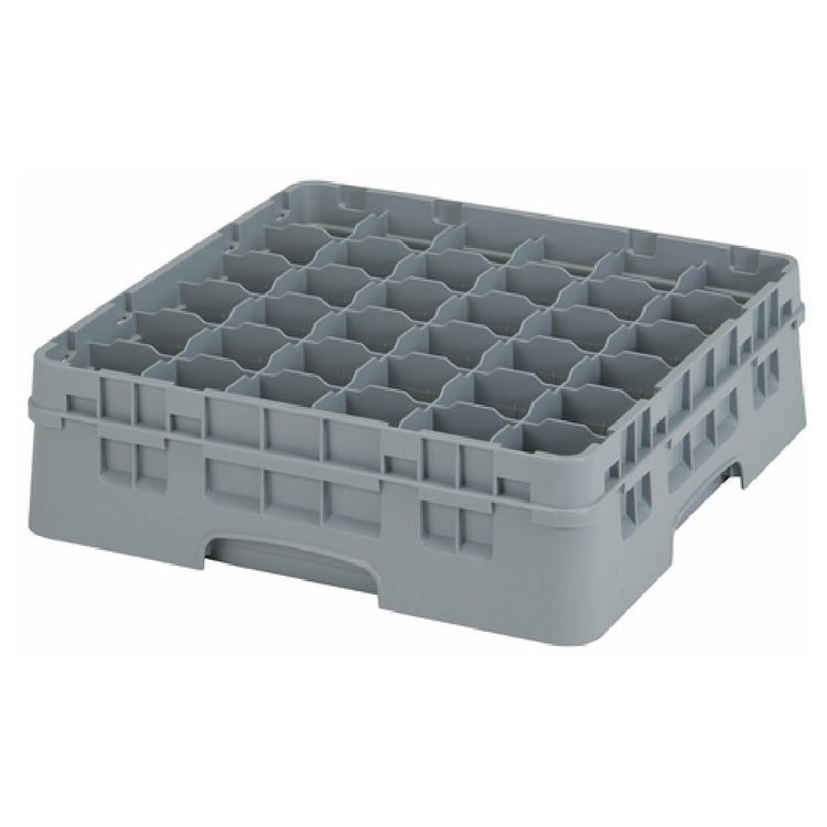 The Cambro 36S418151 Camrack® Glass Rack with Soft Gray Extender Full Size is a highly efficient solution for managing glassware in commercial settings. With its impressive dimensions of 19-3/4" x 19-3/4" x 5-5/8", this low-profile rack is designed to accommodate a wide array of glassware, featuring 36 compartments that each support a maximum diameter of 2-7/8" and a maximum height of 4-1/2". The soft gray construction not only provides a sleek and professional appearance but also ensures durability and ease of handling, minimizing chipping and breakage during transport and storage. The inclusion of a soft gray extender further enhances its capacity and adaptability, making it suitable for various glass sizes and shapes. Compliant with HACCP standards and NSF certified, this glass rack adheres to rigorous health and safety regulations, making it an ideal choice for restaurants, caterers, and other food service operators. Its thoughtful design and robust specifications allow for seamless integration into dishwashing processes, ensuring efficient cleaning and protection of glassware across different industry sectors.