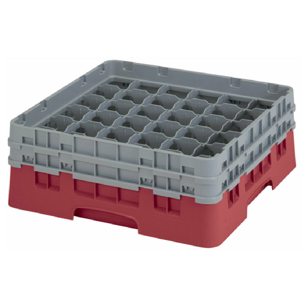 The Cambro 36S434416 Camrack® Glass Rack with (2) Soft Gray Extenders Full Size is meticulously engineered to enhance glass handling and storage efficiency. Designed with a low profile, this full-size rack features dimensions of 19-3/4" x 19-3/4" x 7-1/4", making it a compact yet spacious solution for commercial kitchens and catering environments. It boasts 36 compartments, each accommodating a maximum diameter of 2-7/8" and a height of up to 5-1/4", providing tailored storage for a variety of glassware sizes. The inclusion of (2) soft gray extenders allows for increased height adaptability while maintaining the structural integrity of the rack. Crafted in a striking cranberry color, this rack is both HACCP compliant and NSF certified, ensuring adherence to rigorous health and safety standards. The Cambro 36S434416 is ideal for operators within the hospitality and food service sectors seeking reliable, durable, and hygienic glass rack solutions, offering unmatched practicality and peace of mind in glass transportation and washing processes.