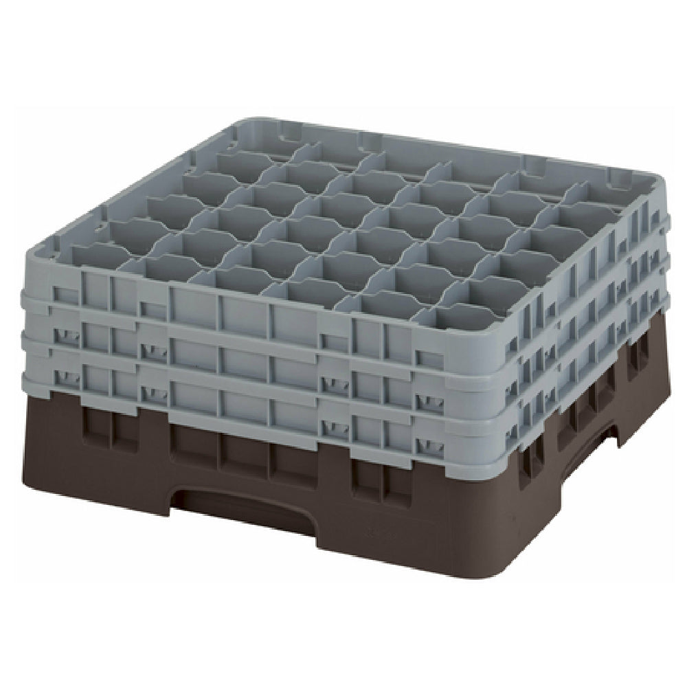 The Cambro 36S738167 Camrack® Glass Rack with (3) soft gray extenders is a full-size, low-profile solution designed to cater to diverse industry needs, particularly those in the food service and hospitality sectors. With dimensions of 19-3/4 inches by 19-3/4 inches by 8-7/8 inches, this glass rack is engineered to efficiently manage space while offering robust storage capabilities. It features 36 compartments, each designed to accommodate glassware with a maximum diameter of 2-7/8 inches and a maximum height of 7-3/4 inches, ensuring protection and stability for a variety of glass sizes. The inclusion of three soft gray extenders enhances its adaptability, allowing for a custom fit based on your specific needs. The rack's brown hue not only provides a professional aesthetic but also aligns with industry standards for durability. This product is both HACCP compliant and NSF certified, guaranteeing that it meets stringent hygiene and safety requirements. The Cambro 36S738167 is an exemplary choice for businesses seeking a reliable, well-structured solution for glassware organization, combining efficiency with compliance, making it indispensable for maintaining operational standards in high-demand environments.