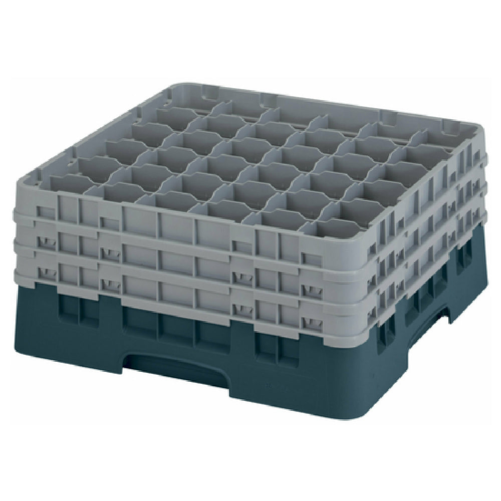 The Cambro 36S738414 Camrack® Glass Rack is a full-size, low-profile solution designed to meet the needs of various market segments within the food and beverage industry. Measuring 19-3/4" x 19-3/4" x 8-7/8", this glass rack is engineered with (3) soft gray extenders, providing optimal versatility and capacity. It features (36) compartments, each accommodating a maximum diameter of 2-7/8" and a maximum height of 7-3/4", making it ideal for securely holding a wide array of glassware. The teal-colored rack is both HACCP compliant and NSF certified, ensuring it meets high standards for safety and sanitation. The Cambro 36S738414 is crafted to support efficient washing, storage, and transport of glassware, making it an essential tool for restaurants, hotels, and catering services. Its robust construction and thoughtful design make it a reliable choice for any establishment seeking to maintain hygiene and organization in their glassware handling processes.