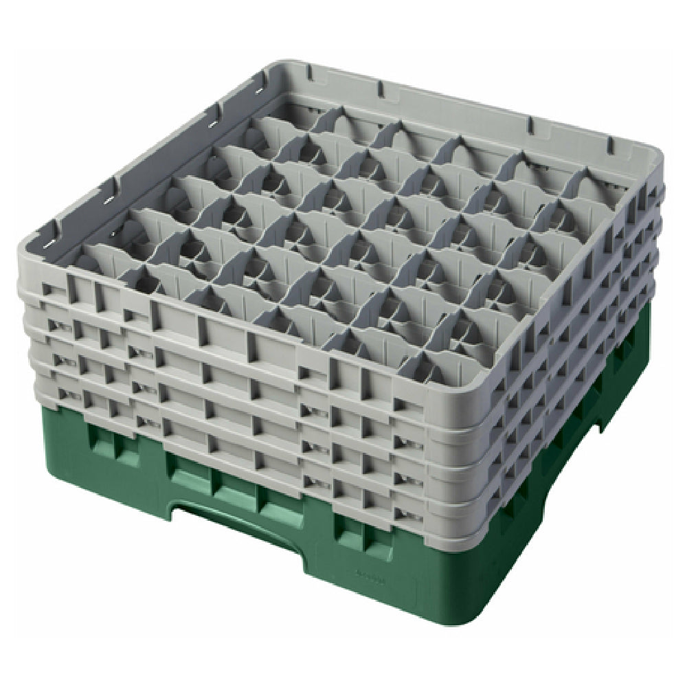 The Cambro 36S800119 Camrack® Glass Rack with (4) soft gray extenders is a full-size solution designed for efficient glassware management across various industry sectors including hospitality and catering. Measuring 19-3/4" x 19-3/4" x 10-1/2", this glass rack features 36 compartments, each accommodating a maximum diameter of 2-7/8" and a maximum height of 8-1/2". Its Sherwood green color distinguishes it within busy environments, and the inclusion of soft gray extenders offers added versatility and protection for taller glasses. The Cambro 36S800119 is both HACCP and NSF compliant, ensuring it meets rigorous health and safety standards required by professional kitchens. This product is ideally suited to streamline operations involving the storage, transport, and cleaning of glassware, making it a valuable asset for venues ranging from small restaurants to large event spaces. Its robust design ensures longevity and reliability, addressing the unique demands of high-volume settings while enhancing operational efficiency with its thoughtful construction.