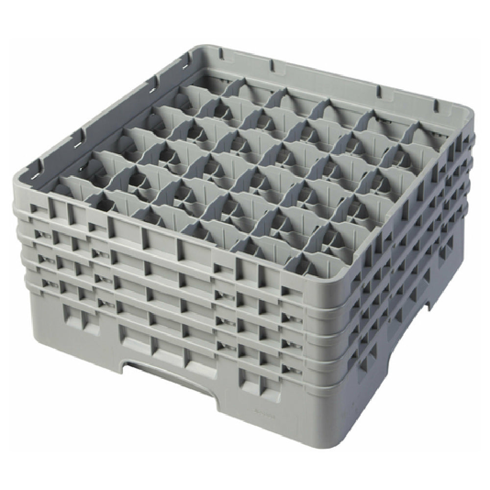 The Cambro 36S800151 Camrack® Glass Rack with (4) soft gray extenders is a full-size storage solution expertly designed for various commercial and industrial applications. With dimensions of 19-3/4" x 19-3/4" x 10-1/2", it provides substantial space, housing 36 compartments tailored to accommodate glassware with a maximum diameter of 2-7/8" and a height of up to 8-1/2". This rack's soft gray extenders are a key feature, enhancing its capacity and flexibility, ensuring that it can adapt to different glass sizes and shapes. The Cambro Camrack® stands out for its compliance with HACCP, a critical feature for food safety and hygiene standards, making it an ideal choice for establishments prioritizing sanitation. Additionally, its NSF certification underscores its reliability and adherence to stringent public health guidelines. The soft gray color not only offers a sleek appearance but also aids in effortlessly integrating into a variety of kitchen environments. The Cambro 36S800151 is a versatile and durable solution, perfect for restaurants, hotels, and catering services that value efficiency and quality in their dishware handling processes. Its sturdy construction and thoughtful design ensure longevity and dependable performance in high-demand settings.