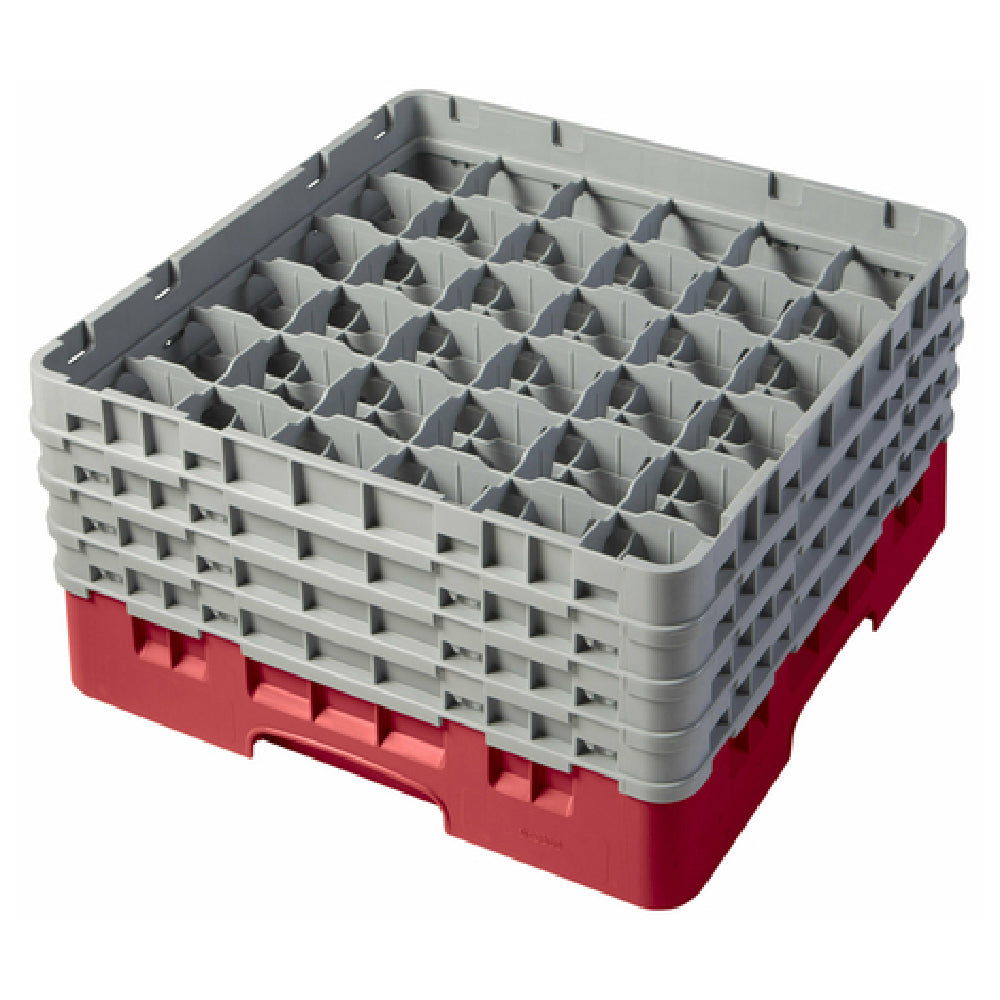 The Cambro 36S800163 Camrack® Glass Rack with (4) Soft Gray Extenders Full Size is a meticulously engineered product designed to enhance efficiency and organization in commercial settings. Measuring 19-3/4" x 19-3/4" x 10-1/2", this full-size glass rack is equipped with 36 compartments, each accommodating a maximum diameter of 2-7/8" and a maximum height of 8-1/2". The inclusion of four soft gray extenders allows for customizable stacking, optimizing space while ensuring the safe transport and storage of glassware. Its vibrant red color ensures easy identification and organization in busy environments. The Cambro 36S800163 is HACCP compliant, supporting food safety and quality control protocols, and is NSF certified, meeting rigorous public health and safety standards. This glass rack is an indispensable asset for restaurants, catering services, and hospitality venues, offering a robust and reliable solution for glassware management. With its precise specifications and durable construction, the Cambro 36S800163 Camrack® is tailored to meet the diverse demands of professionals within the food and beverage industry, enhancing operational efficiency and ensuring the safe handling of delicate glassware.