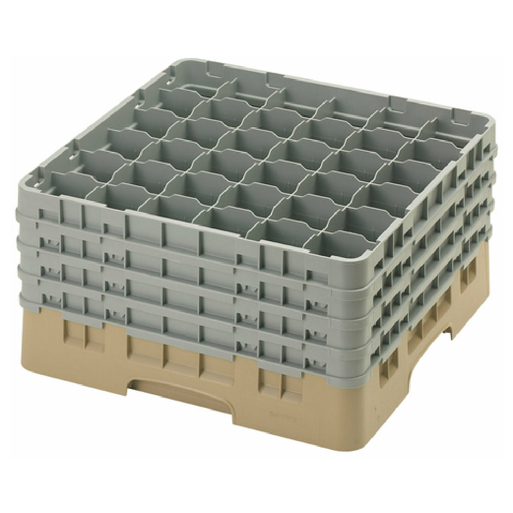 The Cambro 36S900184 Camrack® Glass Rack is a full-size, low-profile solution designed specifically for efficient glassware storage and protection. Measuring 19-3/4" x 19-3/4" x 10-1/2", this rack offers ample space while maintaining a sleek, manageable profile. It features (36) compartments, each accommodating glassware with a maximum diameter of 2-7/8" and a maximum height of 9-3/8". This ensures that a variety of glass sizes fit comfortably, minimizing the risk of damage during storage or transportation. The inclusion of (4) soft gray extenders further enhances its capacity and versatility, making it adaptable for various glass heights. Constructed with a beige exterior, the rack is both HACCP compliant and NSF certified, attesting to its adherence to stringent health and safety standards. This makes it an ideal choice for commercial kitchens, bars, and catering operations that prioritize hygiene and efficiency. Its sturdy construction and thoughtful design cater to the needs of the foodservice industry, ensuring glassware is kept safe, organized, and ready for use. The Cambro 36S900184 is a reliable asset for establishments looking to streamline their dishwashing and storage processes.