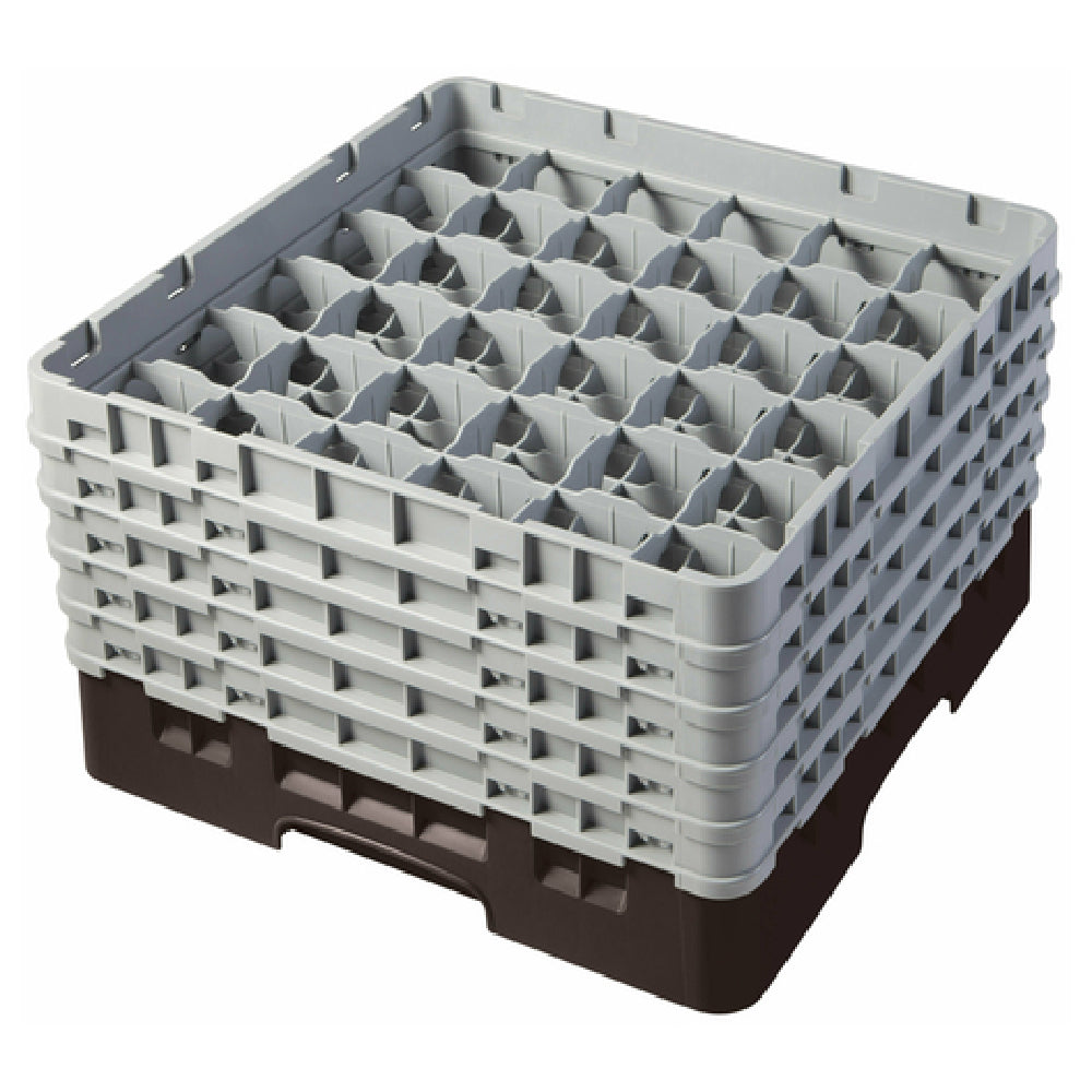 The Cambro 36S958167 Camrack® Glass Rack with (5) soft gray extenders is a full-size glass rack specifically designed to optimize glassware storage and transportation. Measuring 19-3/4" x 19-3/4" x 12-1/8", this glass rack features 36 individual compartments, each accommodating a maximum diameter of 2-7/8" and a maximum height of 10-1/8". The rack's durable construction is complemented by its brown color, ensuring a professional appearance that fits seamlessly into various service environments. The inclusion of five soft gray extenders offers enhanced flexibility, allowing for easy stacking and additional protection for glassware. This product is HACCP compliant, ensuring adherence to critical food safety standards, and is NSF certified, highlighting its commitment to public health and safety. Designed for the hospitality and food service industries, the Cambro Camrack® Glass Rack is an invaluable tool for restaurants, catering services, and banquet facilities aiming to streamline their operations and maintain glassware integrity. Its robust design and compliance with industry standards make it an essential asset for any establishment focused on efficiency and quality in glassware management.