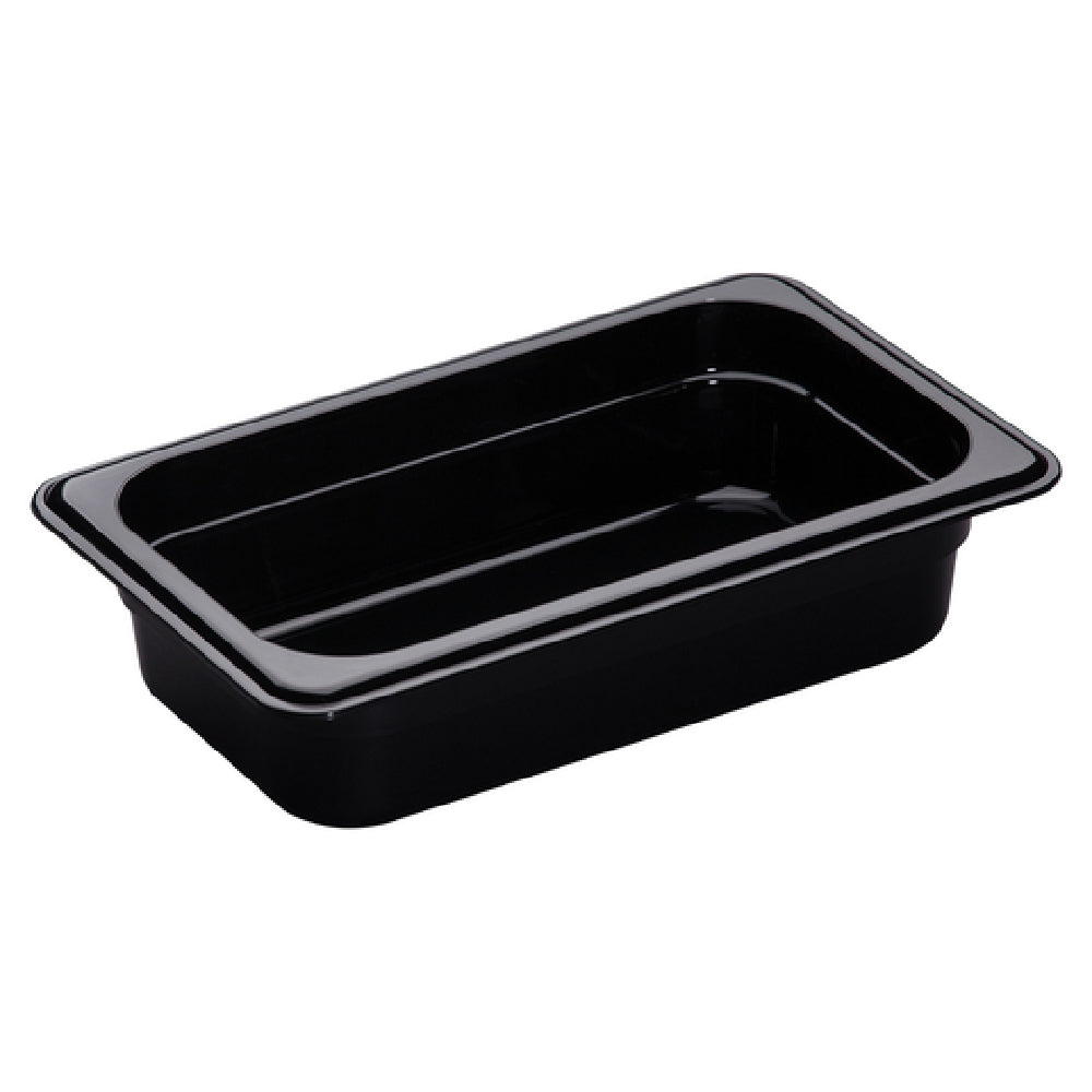 The Cambro 42HP110 H-Pan™ High Heat Hot Food Pan 1/4 Size 2-1/2" Deep is a versatile and durable solution for food service establishments requiring efficient heat management and reliable performance. This pan is constructed from hi-temp plastic, capable of withstanding temperatures ranging from -40°F to 375°F, making it suitable for a wide array of hot and cold applications. The non-stick surface ensures easy food release and cleaning, minimizing food waste and maintenance efforts. Its robust construction ensures it won't bend or dent, providing long-lasting use even in demanding kitchen environments. With a compact 1/4 size and a depth of 2-1/2 inches, this pan is ideal for smaller portions and tight storage spaces. The sleek black finish adds a professional touch to any kitchen setting. Furthermore, the Cambro 42HP110 is NSF certified, indicating it meets strict standards for public health protection. This high heat food pan is an excellent choice for restaurants, catering services, and other food service operations that require reliability, efficiency, and quality in their kitchen equipment.