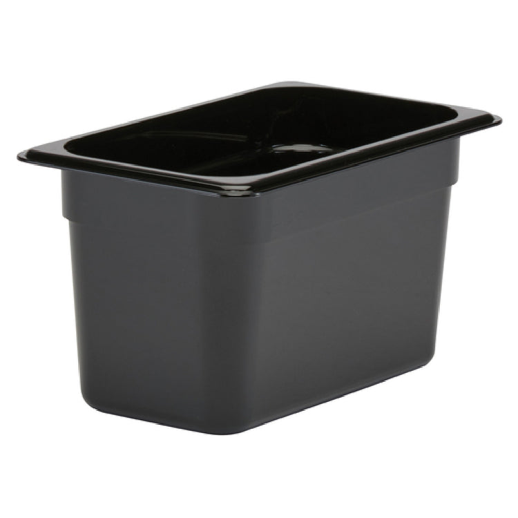 The Cambro 46CW110 Camwear® Food Pan is a versatile storage solution with a 3.9-quart capacity, perfectly designed for a range of culinary and food service applications. With dimensions set at 6 inches deep and a 1/4 size format, this pan is ideal for storing smaller quantities of food. Crafted from high-grade polycarbonate, the pan is noted for its resilience and durability, ensuring longevity in demanding kitchen environments. Its sleek black finish not only adds a professional aesthetic but also aids in the quick identification of contents. As an NSF-certified product, it meets stringent public health and safety standards, providing peace of mind to food service professionals. This Camwear® Food Pan is particularly beneficial for different segment markets within the food industry, from restaurants to catering services, as it supports efficient food storage and presentation. Its robust construction makes it resistant to staining, odors, and scratches, while its transparency allows for easy monitoring of food levels. The Cambro 46CW110 is a reliable choice for any kitchen, blending functionality with quality to support a wide range of food storage needs.