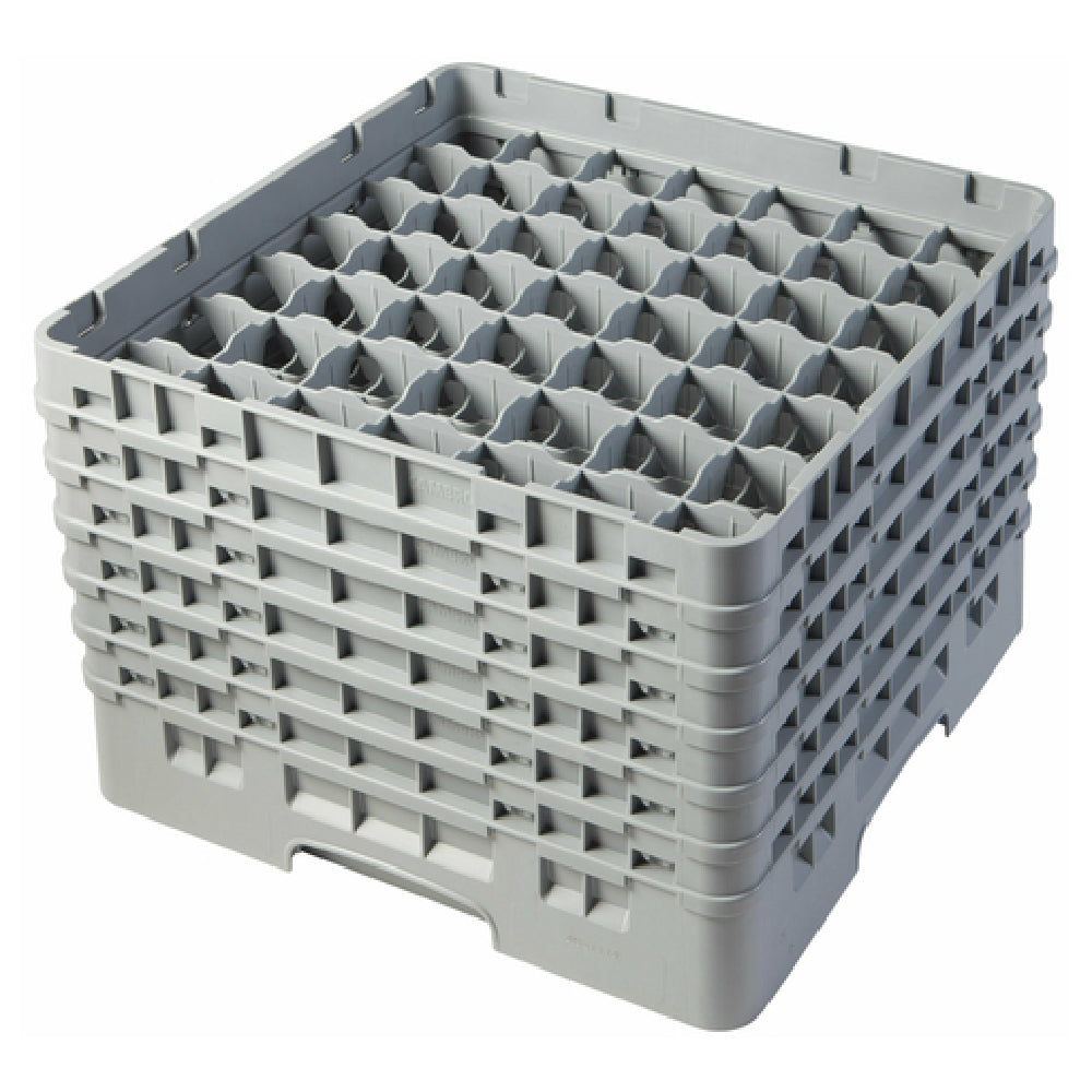 The Cambro 49S1114151 Camrack® Glass Rack with (6) soft gray extenders is a full-size solution designed to meet the demands of various markets within the food service and hospitality industries. Measuring 19-3/4" x 19-3/4" x 13-3/4", this glass rack ensures ample space with its 49 compartments, each capable of accommodating a maximum diameter of 2-7/16" and a maximum height of 11-3/4". This makes it an ideal choice for efficiently organizing and storing a wide range of glassware. The glass rack's six soft gray extenders are not only aesthetically pleasing but also provide additional vertical space, enhancing the rack's capacity to accommodate taller glassware. This thoughtful design element makes it particularly valuable for restaurants, hotels, and catering services that deal with varied glass sizes. Furthermore, the Cambro Camrack® Glass Rack is HACCP compliant and NSF certified, ensuring it meets high safety and sanitation standards. Its robust construction and compliance credentials make it a reliable asset for ensuring the protection and cleanliness of glassware in busy service environments. The practical design and reliable performance characteristics position this product as a key component for efficient glassware management in professional settings.
