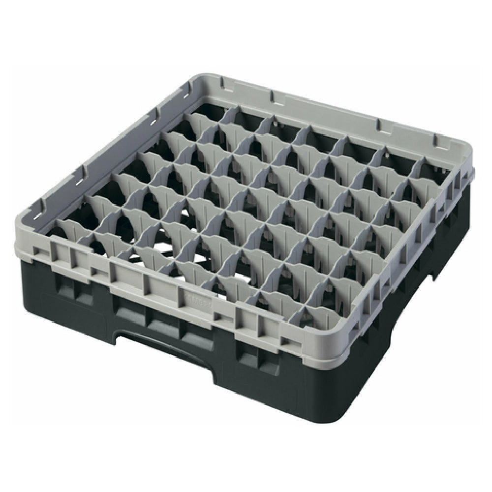 The Cambro 49S318110 Camrack® Glass Rack with Soft Gray Extender Full Size is an essential asset for the food service industry, providing robust and efficient glassware storage and transport solutions. Measuring 19-3/4 inches by 19-3/4 inches by 5-5/8 inches, this full-size rack is engineered to accommodate up to 49 compartments, each designed to hold items with a maximum diameter of 2-7/16 inches and a maximum height of 3-5/8 inches. The soft gray extender enhances its capacity, ensuring versatility in handling glassware of varying sizes. Crafted in an elegant black finish, the Cambro 49S318110 not only meets high aesthetic standards but also aligns with stringent safety and hygiene requirements, being both HACCP compliant and NSF certified. This makes it an indispensable tool for commercial kitchens, bars, and catering operations focused on maintaining high standards of glassware hygiene and safety. The robust construction and thoughtful design of the Cambro 49S318110 facilitate easy integration into various industrial environments, offering reliable performance and durability. Its compliance with industry standards ensures that it effectively meets the diverse needs of different market segments, from small cafes to large banquet services, providing peace of mind with every use.