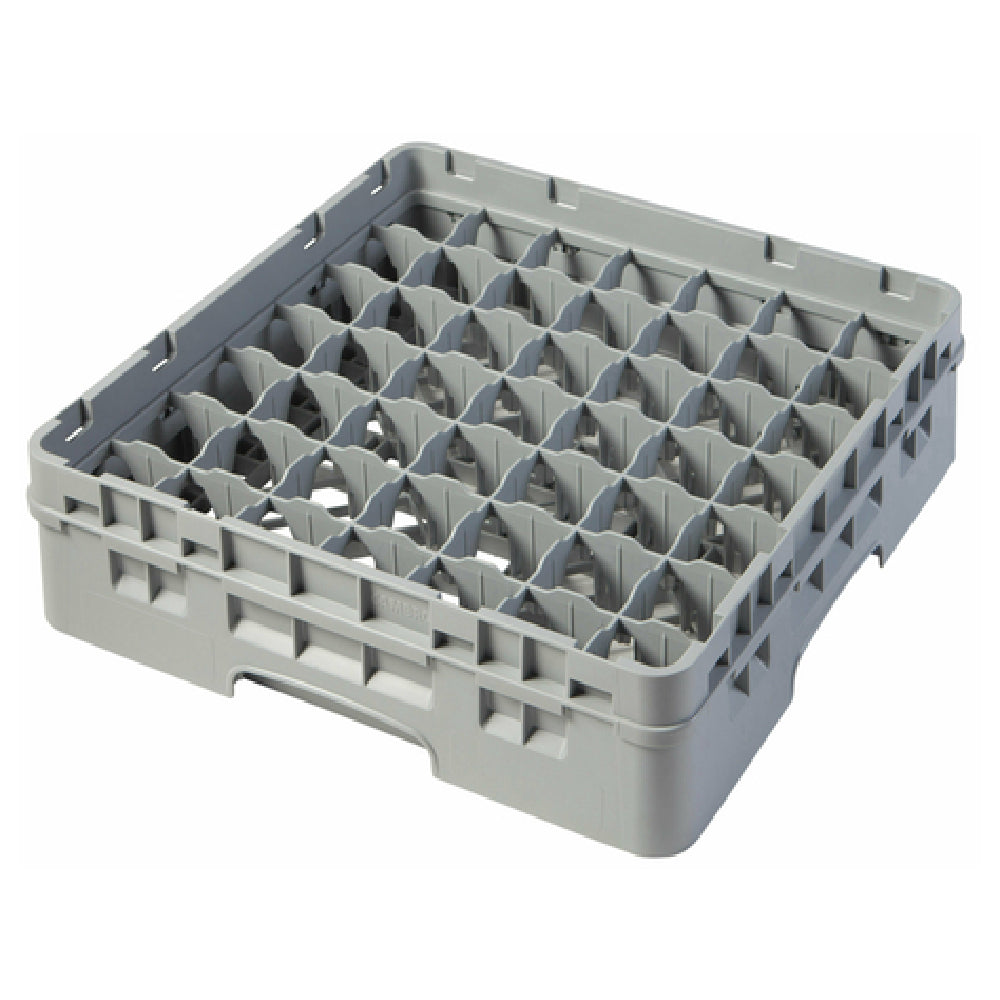 The Cambro 49S318151 Camrack® Glass Rack with Soft Gray Extender Full Size is an essential asset for efficient glassware storage and transportation, particularly in the restaurant and hospitality industries. This full-size rack measures 19-3/4" x 19-3/4" x 5-5/8", ensuring a robust capacity to accommodate a variety of glassware. Featuring 49 individual compartments, each designed to hold items with a maximum diameter of 2-7/16" and a maximum height of 3-5/8", this unit provides optimal protection and organization for delicate glassware. The soft gray extender adds versatility, allowing for adjustments to meet varying glass heights while enhancing the rack's aesthetic appeal. The Cambro Camrack is HACCP compliant, ensuring it meets international standards for food safety and hygiene. Additionally, it holds an NSF certification, guaranteeing its adherence to public health regulations. This glass rack is an ideal choice for establishments looking to streamline their glassware handling processes, offering a practical solution that merges durable construction with user-friendly design. Whether for a bustling bar, a busy restaurant, or a catering service, the Cambro 49S318151 provides reliable support for maintaining the integrity and cleanliness of glassware in high-demand environments.