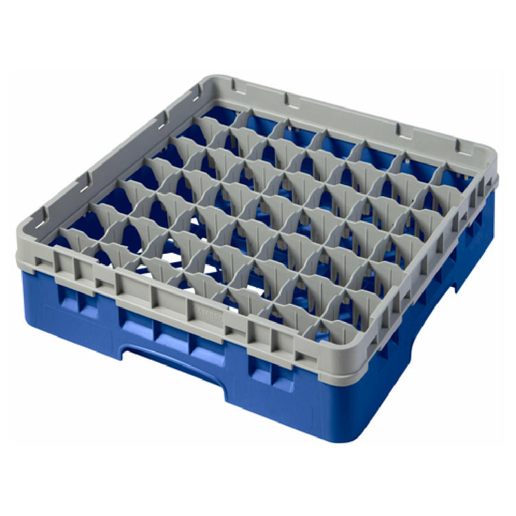 The Cambro 49S318168 Camrack® Glass Rack With Soft Gray Extender Full Size is a meticulously designed storage solution perfect for maintaining glassware in pristine condition. With dimensions of 19-3/4" x 19-3/4" x 5-5/8", it efficiently organizes glassware across its 49 compartments, each accommodating a maximum diameter of 2-7/16" and a maximum height of 3-5/8". The rack is enhanced by a soft gray extender, which adds to its robust structure, ensuring comprehensive protection during transport and storage. Available in a striking blue color, the rack is both visually appealing and practical. This product is HACCP compliant, ensuring it meets critical food safety standards, and it is NSF certified, affirming its adherence to public health and safety guidelines. Ideal for restaurants, hotels, and catering businesses, the Cambro 49S318168 Camrack® Glass Rack provides a professional-grade solution for efficient glassware handling, ensuring durability and ease of use in high-demand environments. Its full-size design caters to various segments of the food service industry, offering a reliable and organized approach to glassware management, making it an essential tool for maintaining operational efficiency and safeguarding valuable glassware assets.