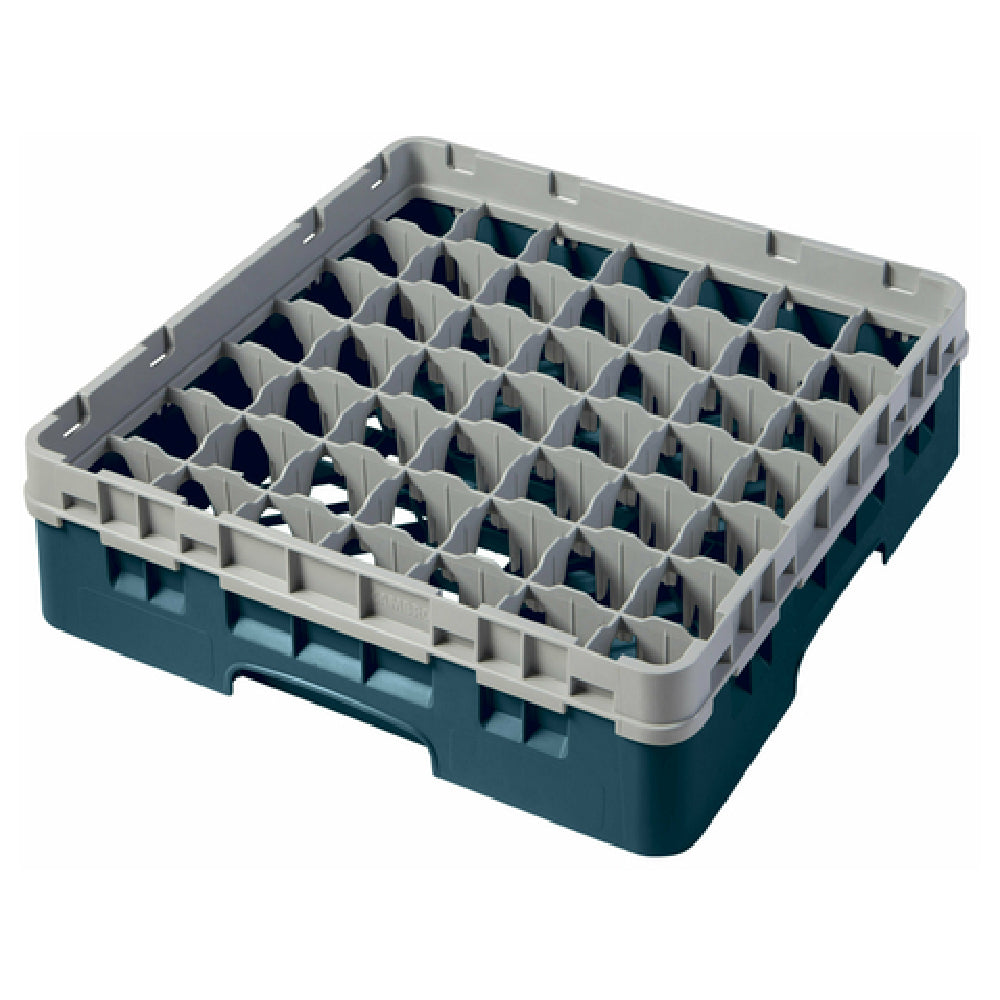 The Cambro 49S318414 Camrack® Glass Rack with Soft Gray Extender Full Size is engineered to meet the rigorous demands of the food service industry with precision and efficiency. Measuring 19-3/4 inches by 19-3/4 inches by 5-5/8 inches, this full-size rack provides 49 individual compartments, each designed to accommodate glassware with a maximum diameter of 2-7/16 inches and a maximum height of 3-5/8 inches. The soft gray extender enhances its functionality by providing added protection and support, ensuring glassware is secure during transportation and storage. The rack's vibrant teal color not only adds a touch of style but also makes it easily identifiable within an inventory system. Proudly HACCP compliant and NSF certified, this Camrack glass rack adheres to stringent health and safety standards, making it an ideal choice for restaurants, hotels, and catering services that prioritize hygiene and efficiency. This product's design optimally balances capacity, durability, and performance, making it an indispensable asset for any establishment that requires reliable glassware storage solutions. Whether used in bustling kitchens or event venues, the Cambro 49S318414 Camrack® Glass Rack is a testament to quality and practical design.