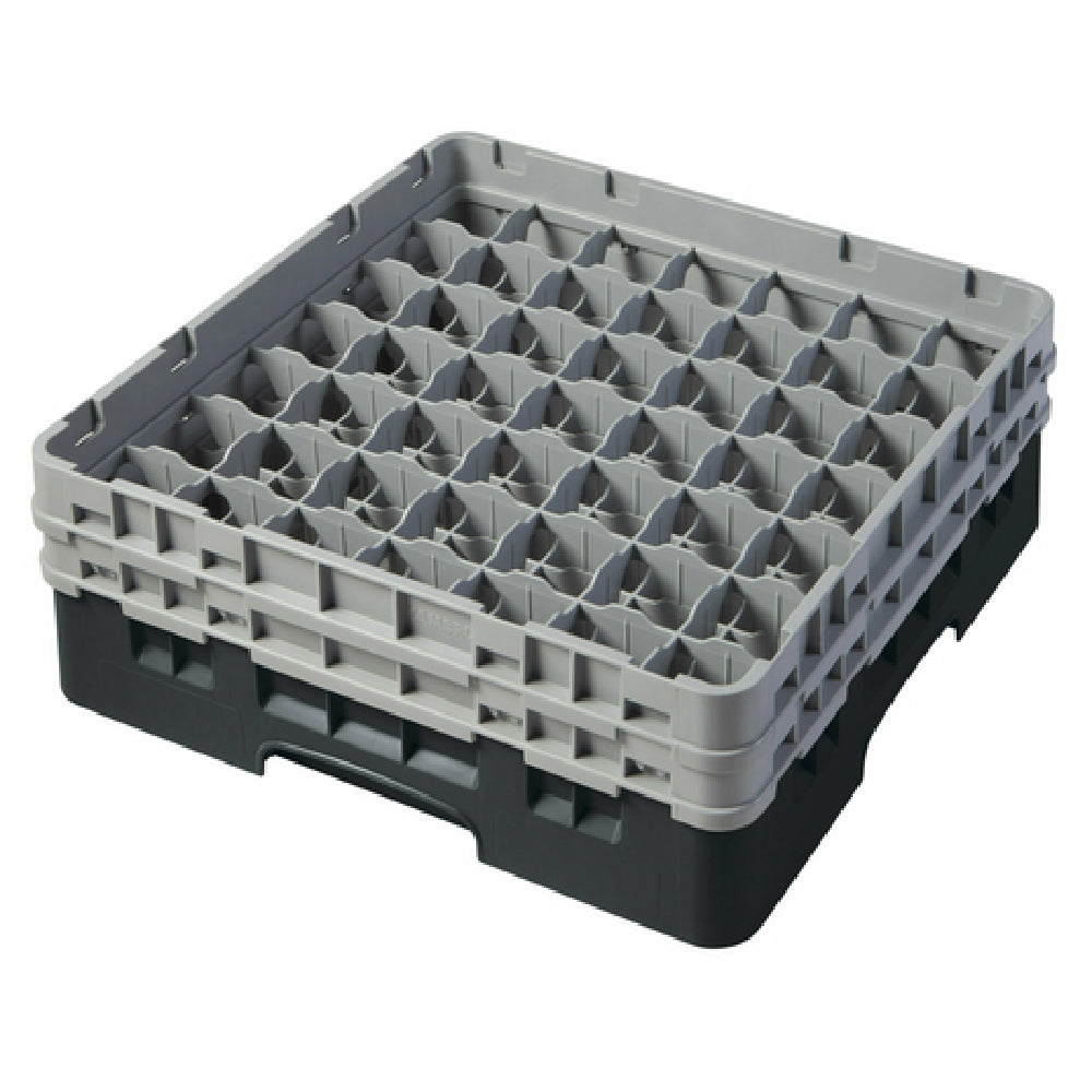 The Cambro 49S434110 Camrack® Glass Rack With (2) Soft Gray Extenders Full Size is a meticulously designed solution for efficient glassware management across various industry segments, including hospitality and food service. Measuring 19-3/4" x 19-3/4" x 7-1/4", this full-size glass rack accommodates up to 49 compartments, each with a maximum diameter of 2-7/16" and a height of 5-1/4". The rack’s black color not only adds a professional appearance but also aids in easy identification during operations. It includes two soft gray extenders that enhance its versatility by adapting to different glass sizes, ensuring secure storage and transportation. The Cambro Camrack is HACCP compliant, demonstrating its adherence to food safety standards, and holds NSF certification, ensuring it meets public health and safety regulations. Designed for durability, this rack is an invaluable asset for maintaining glassware integrity, facilitating efficient workflows, and ensuring compliance with industry standards. Its robust construction and thoughtful design make it particularly suited for environments that demand high standards of hygiene and operational efficiency, making it a preferred choice for establishments aiming to optimize their glassware handling processes.