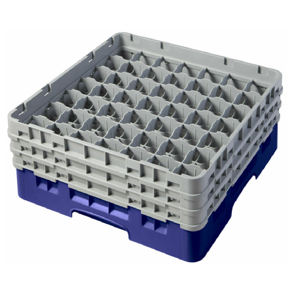 The Cambro 49S638186 Camrack® Glass Rack with (3) soft gray extenders is a full-size solution designed for efficient glassware organization and protection. Measuring 19-3/4" x 19-3/4" x 8-7/8", this robust rack features 49 individual compartments, each accommodating glasses up to 2-7/16" in diameter and 6-7/8" in height. This design ensures that a diverse range of glassware can be securely stored and transported. The addition of soft gray extenders provides added height and flexibility, making it adaptable for varying glass sizes. The rack's navy blue color not only adds a professional aesthetic but also helps easily identify it within a busy service environment. Importantly, the Cambro 49S638186 is both HACCP compliant and NSF certified, ensuring it meets stringent standards for safety and sanitation, making it suitable for use in high-demand food service operations. This Camrack® Glass Rack is an excellent choice for restaurants, caterers, and bars looking to optimize their glassware handling with a durable and reliable solution. Its construction is tailored to support the rigorous demands of commercial kitchens while promoting efficient workflow and minimizing the risk of breakage during transport and storage.