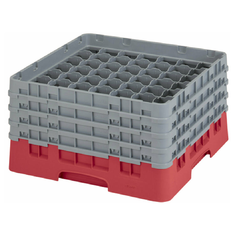 The Cambro 49S800163 Camrack® Glass Rack with (4) soft gray extenders is a full-size storage solution designed for efficient glassware management in various foodservice environments. Measuring 19-3/4" x 19-3/4" x 10-1/2", this glass rack is engineered to accommodate up to 49 glass compartments. Each compartment can hold glasses with a maximum diameter of 2-7/16" and a height of up to 8-1/2". The inclusion of four soft gray extenders ensures that taller glasses are securely supported and protected during transport and storage. The rack's vibrant red color not only adds a distinctive visual appeal but also facilitates easy identification in busy kitchen settings. It is both HACCP compliant and NSF certified, affirming its adherence to rigorous health and safety standards. This makes the Cambro 49S800163 Camrack® Glass Rack an ideal choice for hotels, restaurants, and catering businesses that prioritize hygiene and efficiency in their glassware operations. Its durable construction and thoughtful design provide a reliable solution for enhancing operational productivity and maintaining glassware integrity. Whether for high-volume usage or specialized storage needs, this glass rack offers a practical and compliant option for diverse market segments within the foodservice industry.