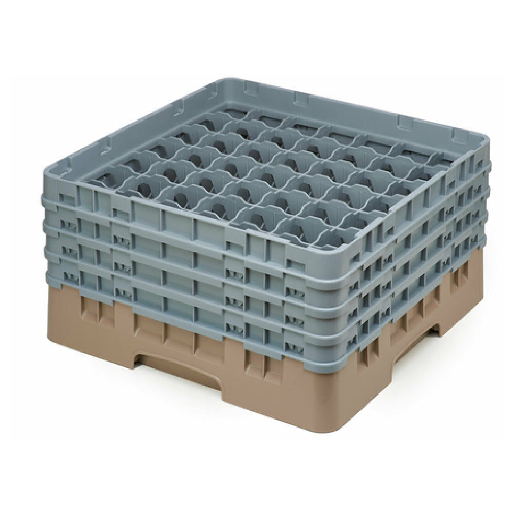 The Cambro 49S800184 Camrack® Glass Rack with (4) soft gray extenders is a full-size glass rack designed for optimal organization and protection of glassware. Measuring 19-3/4" x 19-3/4" x 10-1/2", this rack provides ample space, accommodating a total of 49 compartments. Each compartment supports a maximum diameter of 2-7/16" and a maximum height of 8-1/2", ensuring a snug fit for a variety of glass sizes and shapes. The soft gray extenders enhance the rack's capacity and adaptability, making it suitable for diverse settings such as restaurants, catering services, and event venues. Constructed in a beige color, this rack is both HACCP compliant and NSF certified, guaranteeing adherence to high standards of food safety and sanitation. The design of the Cambro 49S800184 Camrack® Glass Rack facilitates easy transport and handling, while ensuring that delicate glassware is kept secure and clean. This rack represents a reliable choice for professionals seeking efficient warewashing solutions in the hospitality and foodservice industry.
