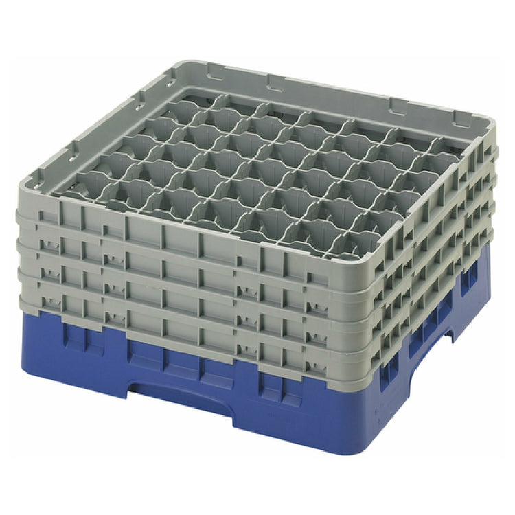 The Cambro 49S800186 Camrack® Glass Rack With (4) Soft Gray Extenders Full Size is engineered to meet the demands of various segments in the food and beverage industry, providing an efficient solution for glass storage and transport. This full-size rack measures 19-3/4" x 19-3/4" x 10-1/2", offering ample space for a total of 49 compartments, each capable of accommodating glassware with a maximum diameter of 2-7/16" and a maximum height of 8-1/2". The navy blue rack is equipped with four soft gray extenders, enhancing its utility by allowing it to handle taller glassware securely. The Cambro Camrack is HACCP compliant, ensuring it meets stringent food safety standards, and is also NSF certified, guaranteeing its suitability for commercial use. Its robust construction and thoughtful design make it a reliable choice for establishments looking to maximize storage efficiency, maintain hygiene, and ensure the safety of glassware during transportation. This rack is particularly valuable for high-volume restaurants, hotels, and catering businesses seeking to streamline their operations while protecting their glassware investment.
