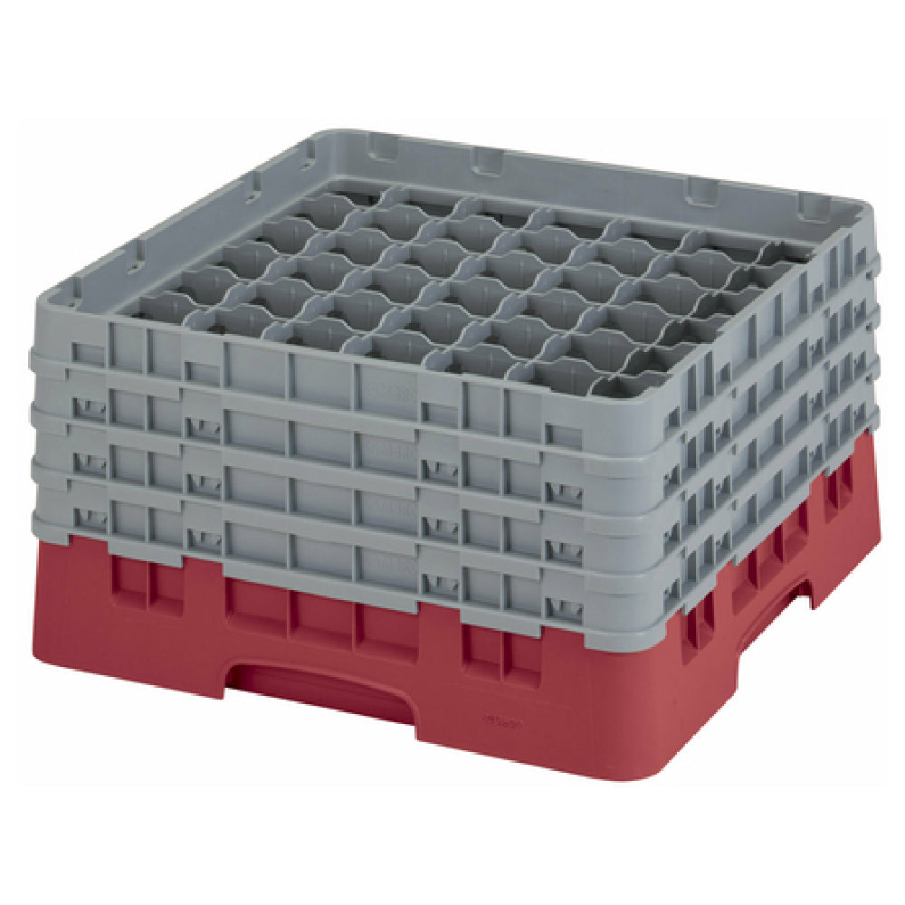 The Cambro 49S800416 Camrack® Glass Rack With (4) Soft Gray Extenders Full Size is an essential addition to any commercial kitchen or restaurant setting that requires efficient glassware storage and transportation. With dimensions of 19-3/4" x 19-3/4" x 10-1/2", this full-size rack is specifically designed to accommodate up to 49 compartments, each with a maximum diameter of 2-7/16" and a maximum height of 8-1/2". The inclusion of four soft gray extenders provides additional height, allowing for versatile use with various glass sizes, while maintaining the structural integrity needed for safe stacking and transport. Its cranberry color enhances visibility and organization within a busy environment. The Camrack® system is HACCP compliant, ensuring it meets rigorous food safety standards, and is certified by NSF, guaranteeing a high level of quality and safety. This glass rack is ideal for hospitality industries, catering services, and any venue that demands reliable glass protection and handling solutions. The combination of its robust construction and efficient compartmentalization makes the Cambro 49S800416 an invaluable asset for operations looking to maintain pristine glassware while optimizing their storage capabilities.