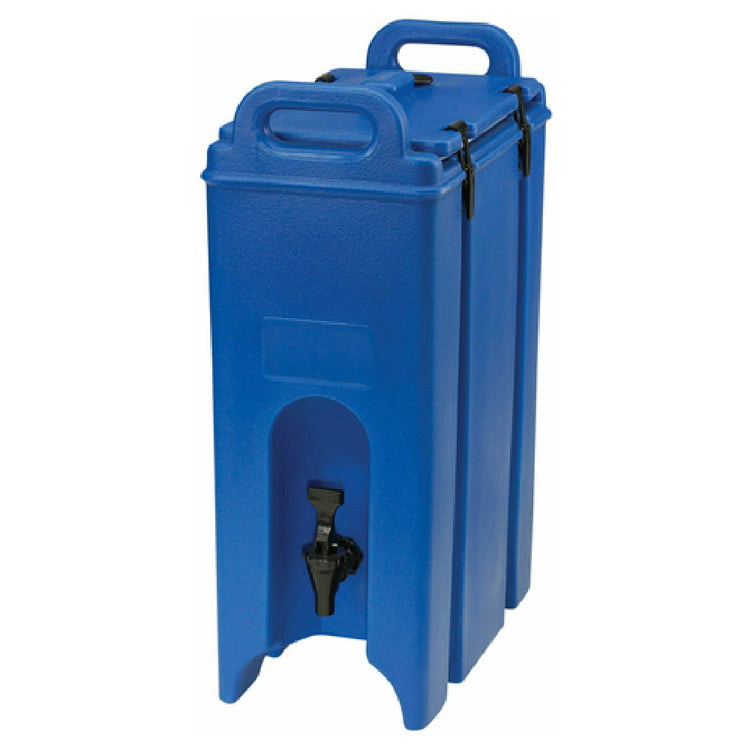 The Cambro 500LCD186 Camtainer® Beverage Carrier is engineered to meet the diverse needs of the food and beverage industry with its exceptional functionality and design. This specific model has a capacity of 4-3/4 gallons, making it an ideal solution for catering services, hospitality events, and large gatherings that require efficient beverage service. With dimensions of 9 inches in width, 16-1/2 inches in depth, and 24-1/4 inches in height, it offers a compact yet spacious design that caters to space-conscious environments. Constructed from insulated plastic, this beverage carrier ensures that beverages maintain their optimal temperature for extended periods, enhancing service quality and customer satisfaction. The navy blue color adds a professional touch to any service setting, while the NSF certification guarantees adherence to public health and safety standards. The Cambro 500LCD186 Camtainer® is a versatile and reliable choice for any food service operation requiring a durable and effective solution for hot or cold beverage transport and dispensing.